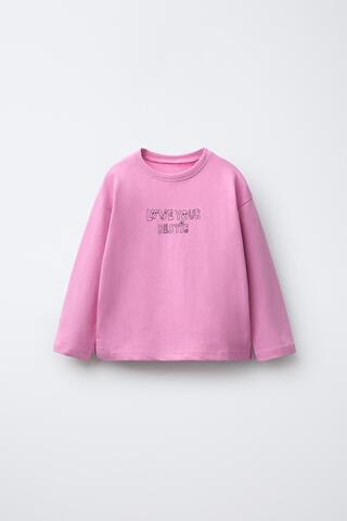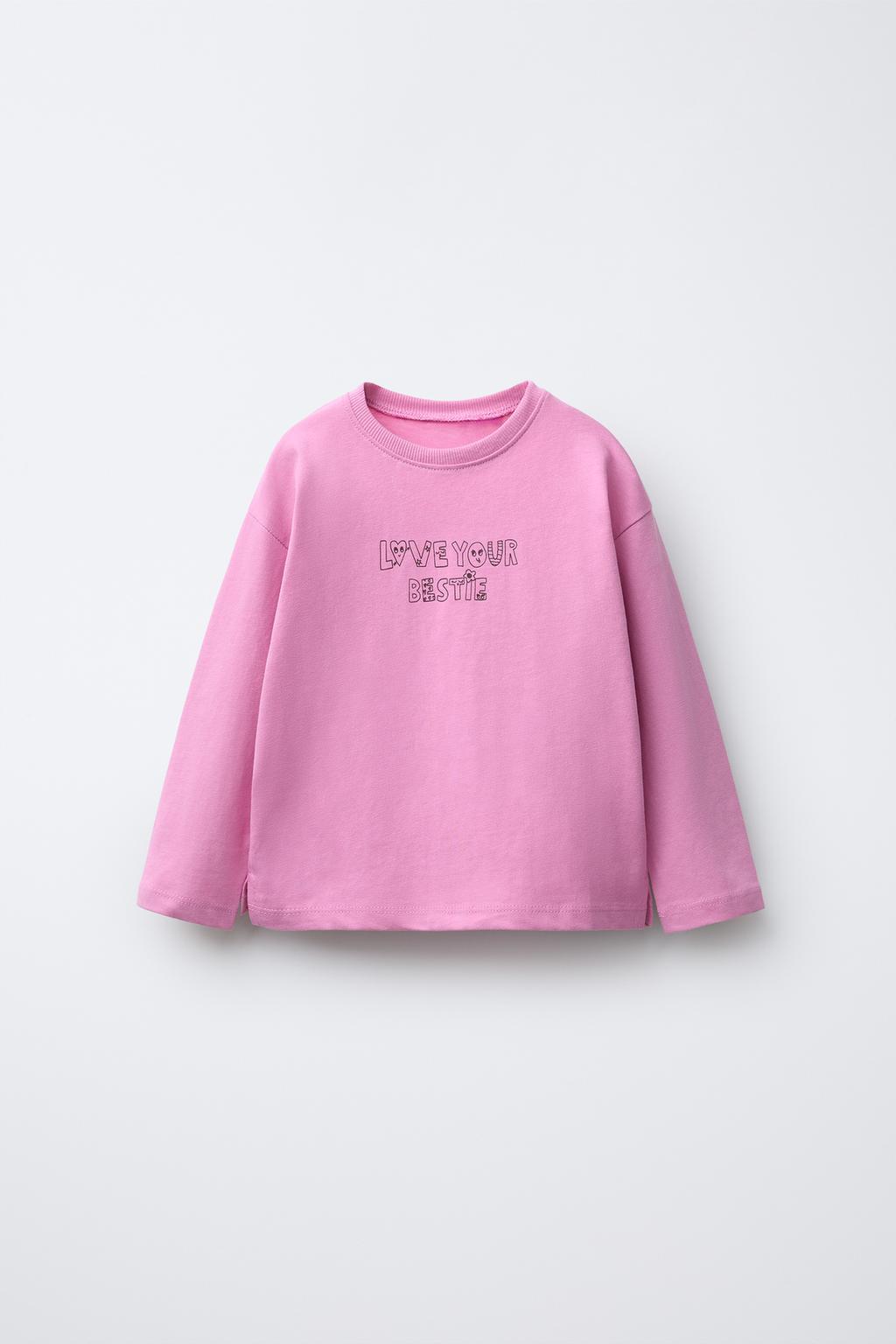 ZARA ФУТБОЛКА С ПРИНТОМ, РОЗОВЫЙ