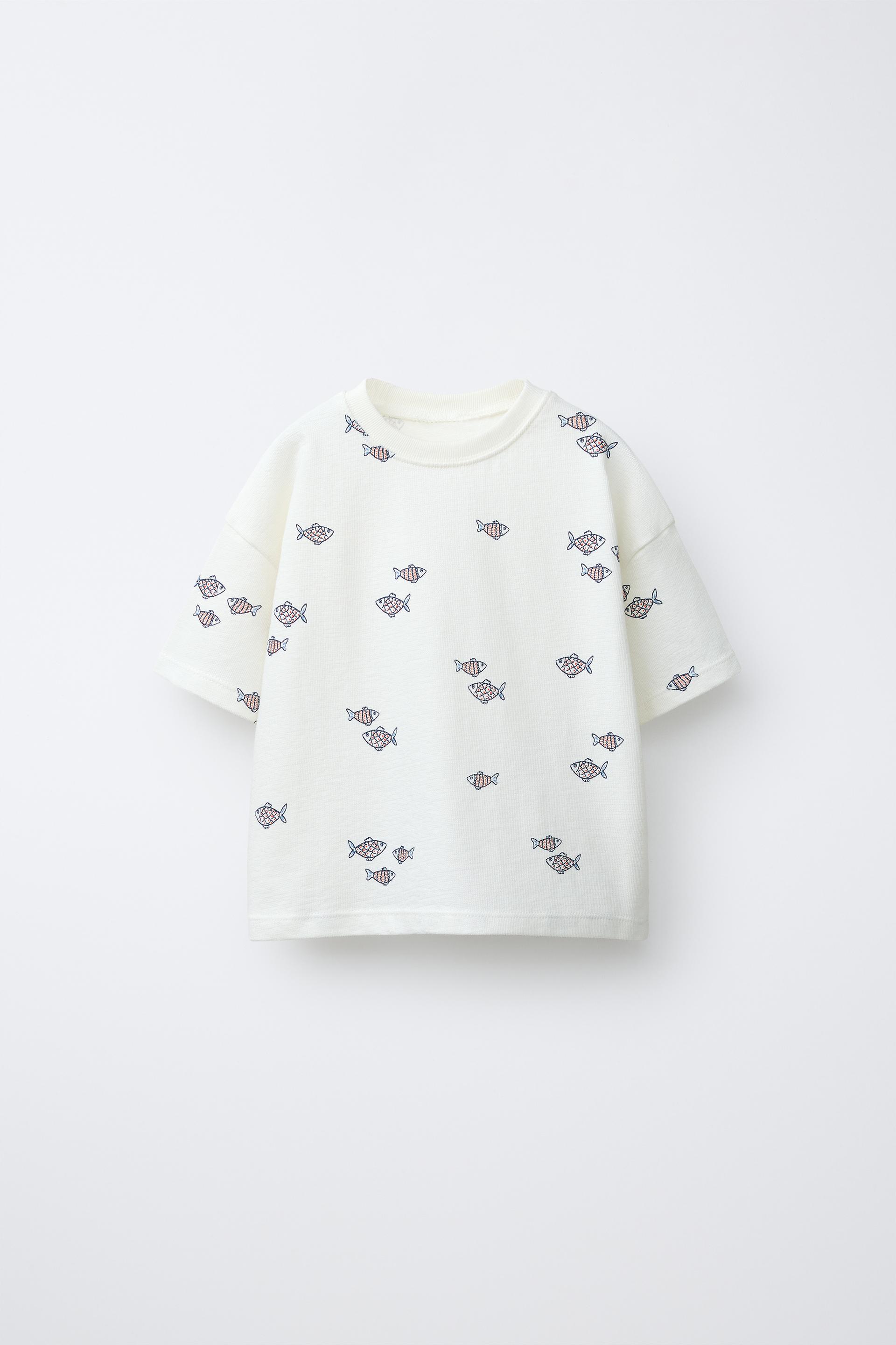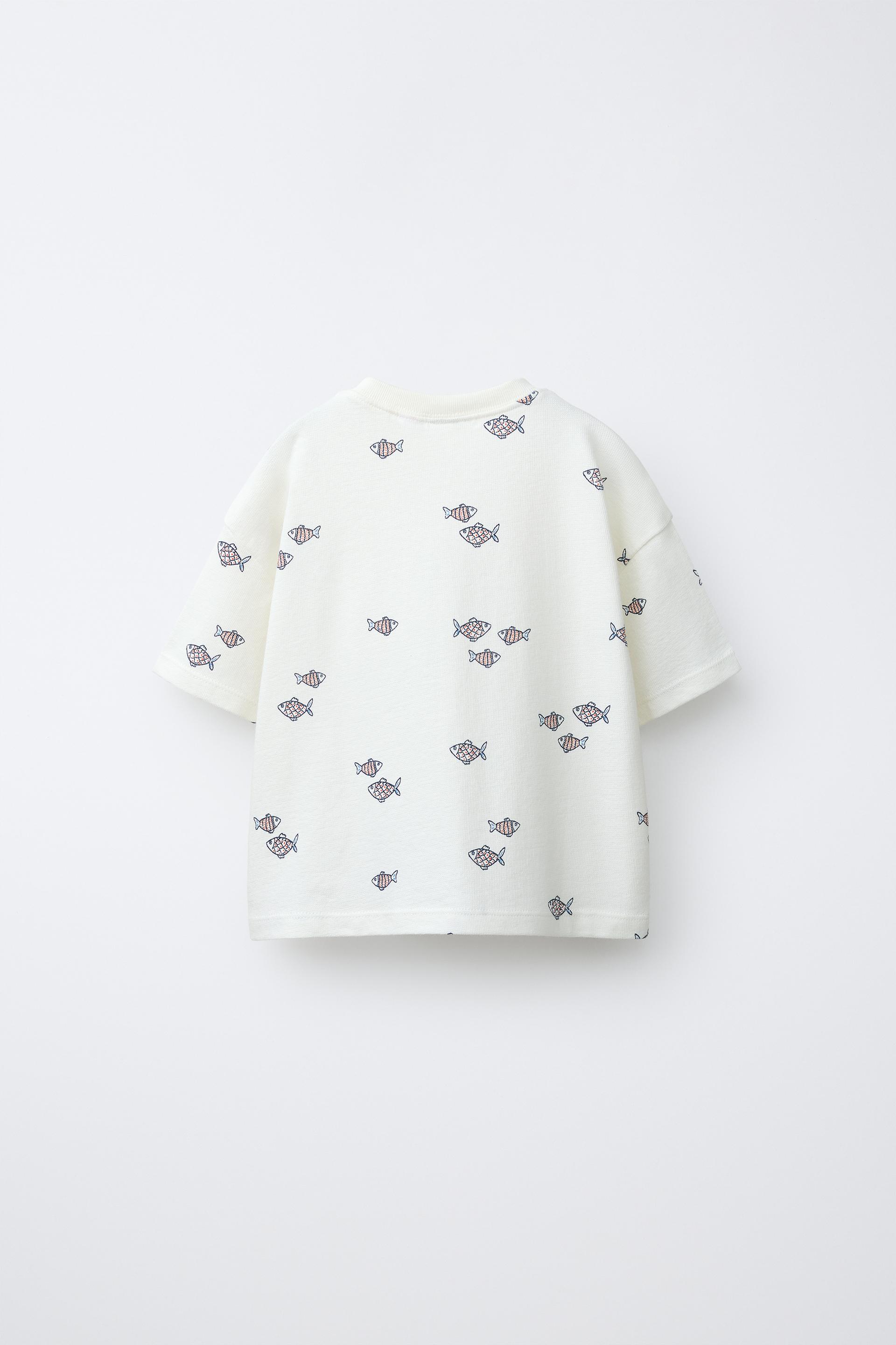 ZARA ФУТБОЛКА С ПРИНТОМ «РЫБЫ», ЭКРЮ