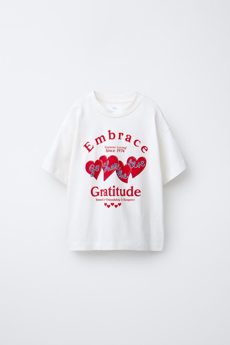 ZARA ФУТБОЛКА С ПРИНТОМ «СЕРДЕЧКИ», БЕЛЫЙ