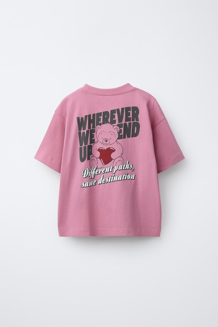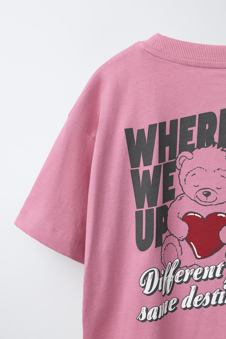 ZARA ФУТБОЛКА С ПРИНТОМ «СЕРДЕЧКИ», РОЗОВЫЙ