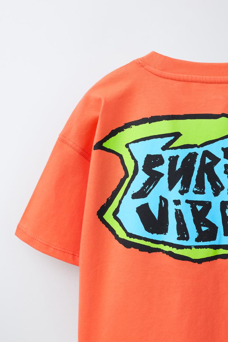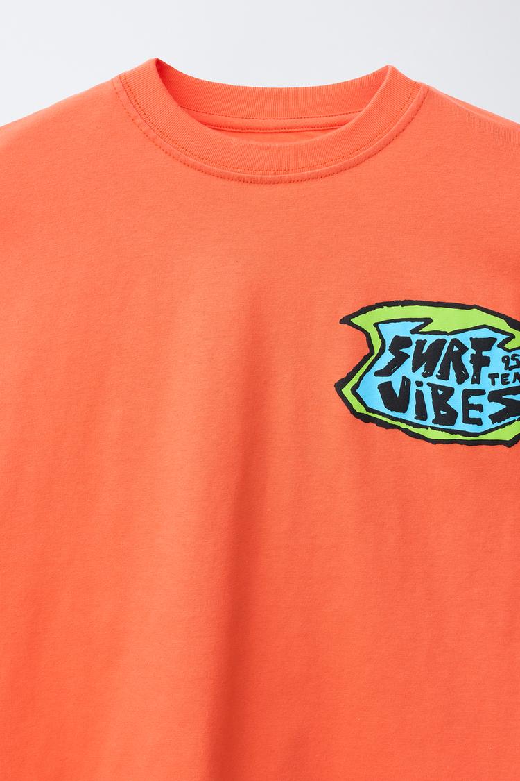 ZARA ФУТБОЛКА С ПРИНТОМ "СЕРФИНГ", ОРАНЖЕВЫЙ