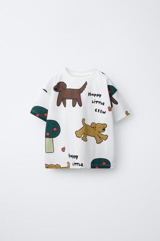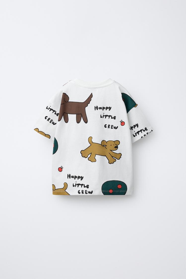 ZARA ФУТБОЛКА С ПРИНТОМ «СОБАКА», ЖЕЛТОВАТО-БЕЛЫЙ
