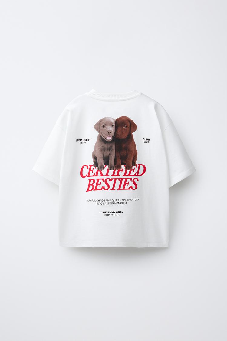ZARA ФУТБОЛКА С ПРИНТОМ «СОБАКИ», БЕЛЫЙ