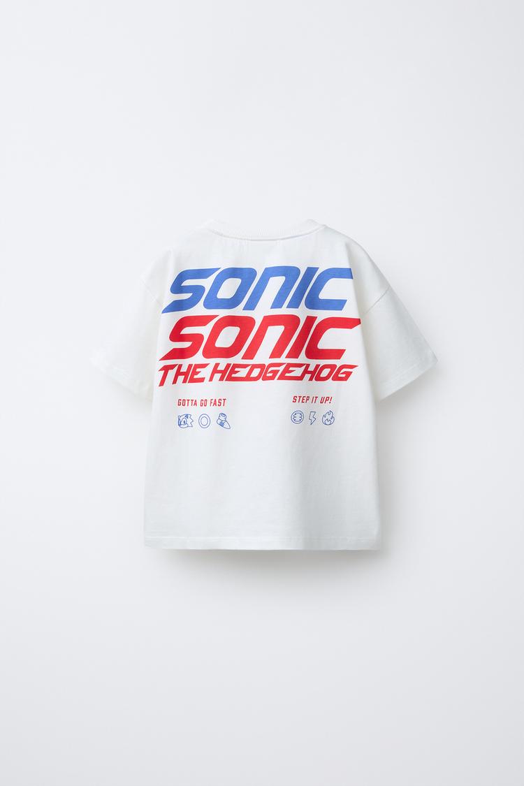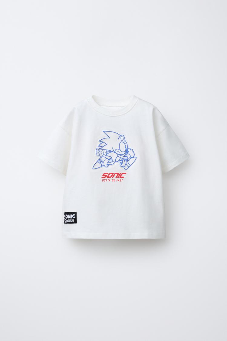 ZARA ФУТБОЛКА С ПРИНТОМ SONIC AND SHADOW © SEGA, БЕЛЫЙ