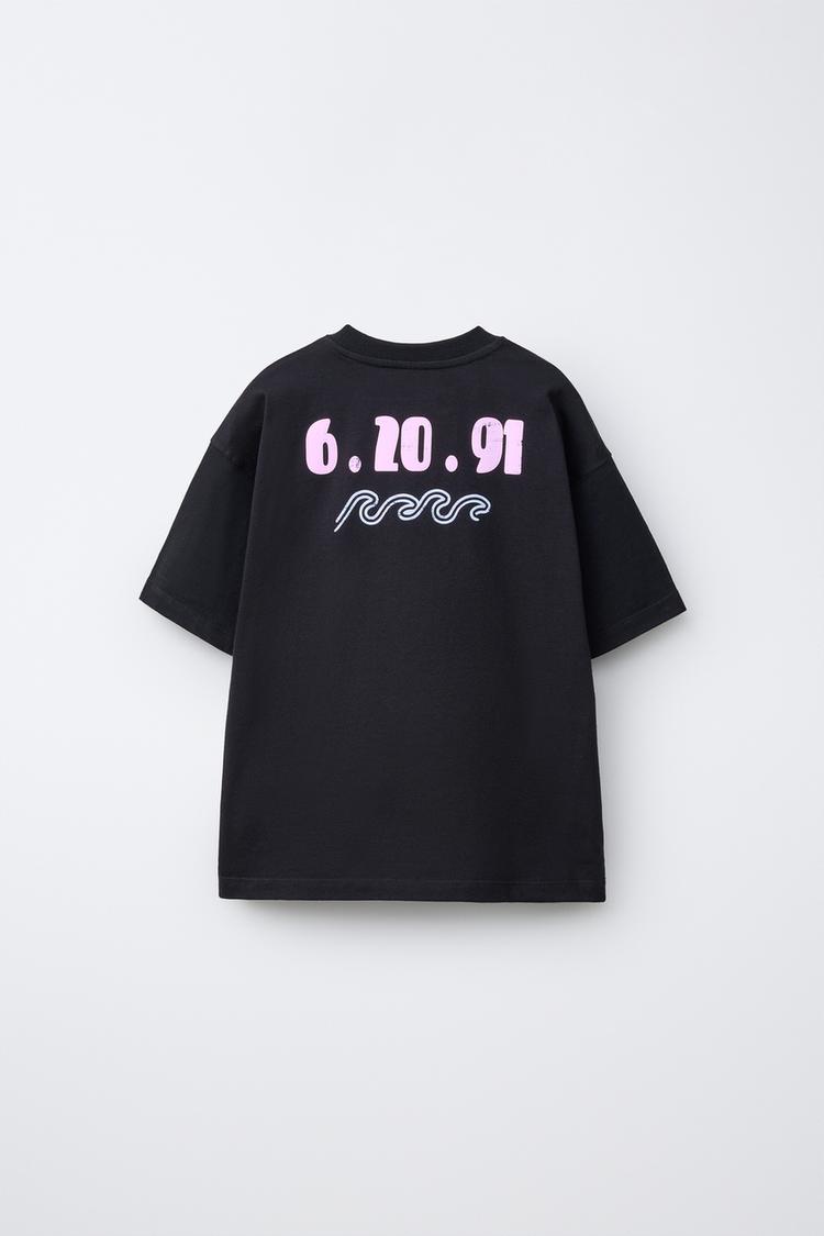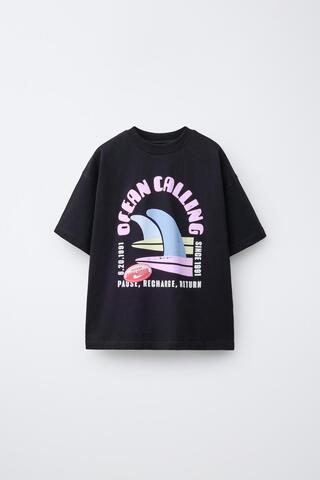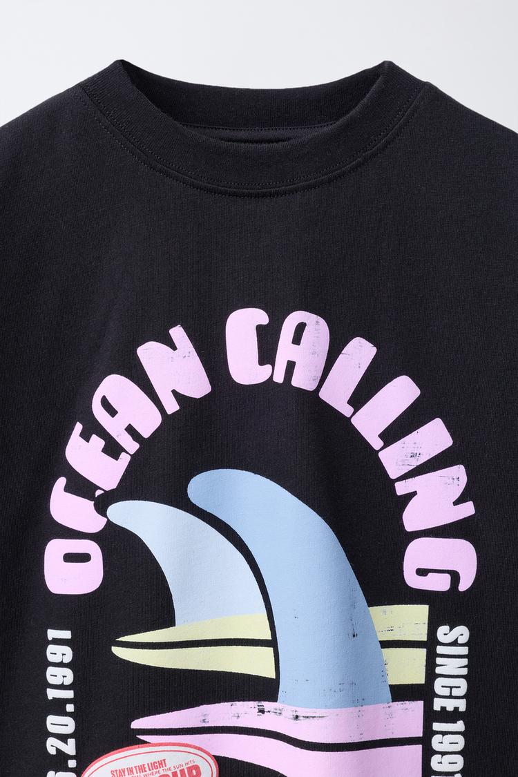 ZARA ФУТБОЛКА С ПРИНТОМ SURF, ЧЕРНЫЙ