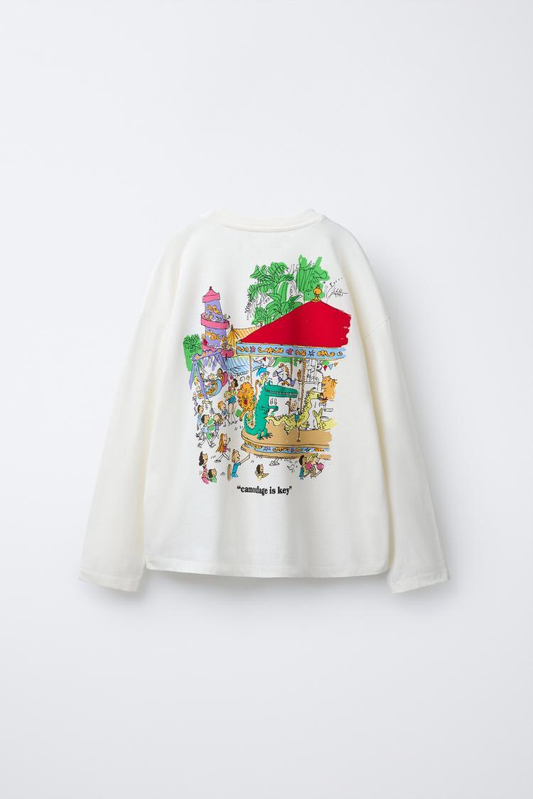 ZARA ФУТБОЛКА С ПРИНТОМ THE ENORMOUS CROCODILE ROALD DAHL ©, ЭКРЮ