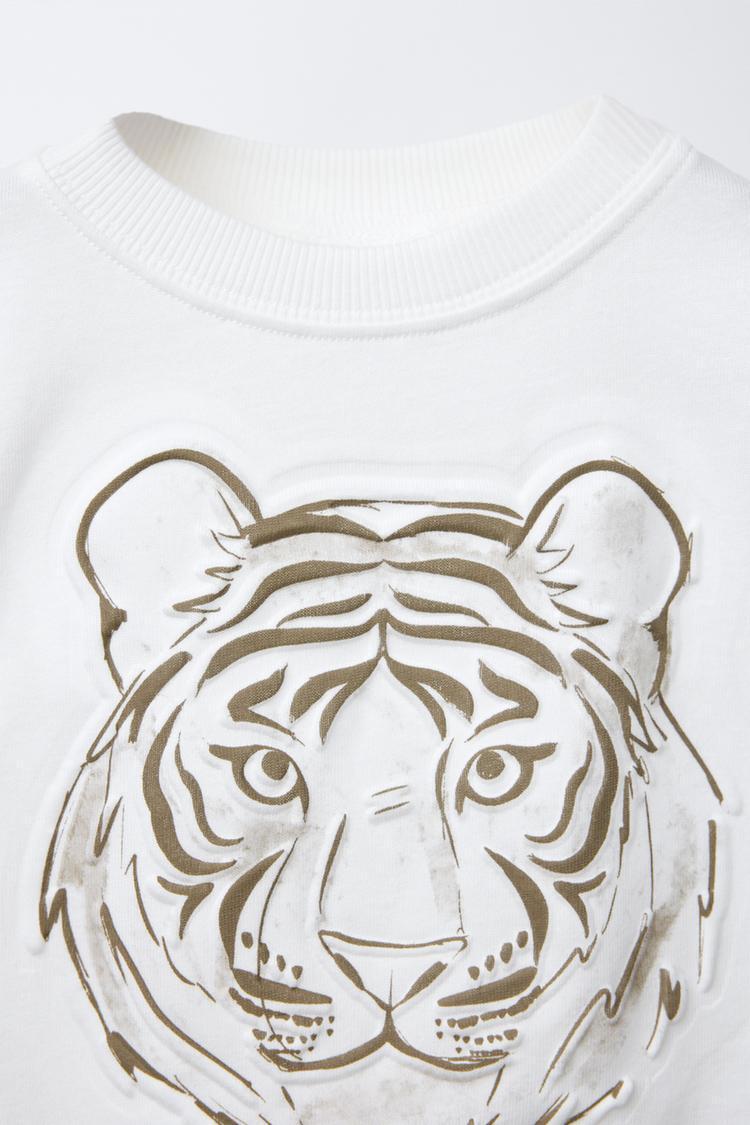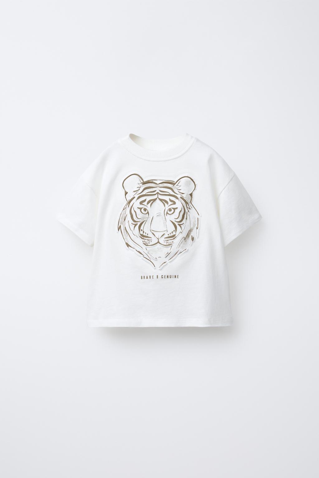 ZARA ФУТБОЛКА С ПРИНТОМ "ТИГР", БЕЛЫЙ