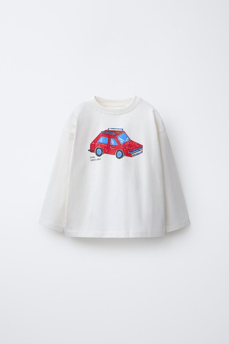 ZARA ФУТБОЛКА С ПРИНТОМ «ТРАНСПОРТ», ЭКРЮ
