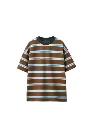 ZARA ФУТБОЛКА С ПРИНТОМ В ПОЛОСКУ, КОРИЧНЕВЫЙ