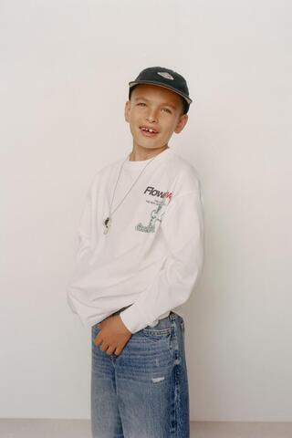 Футболка с круглым вырезом и длинными рукавами с манжетами. Принт на груди и сзади. Ткань 100% хлопок.