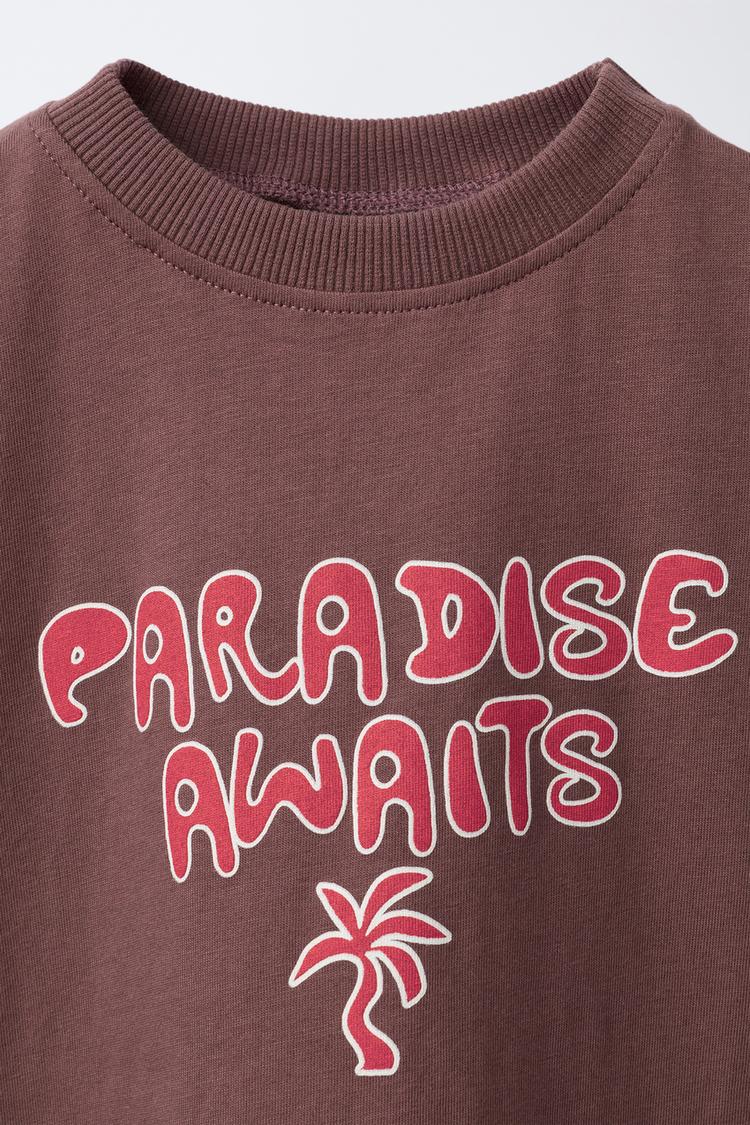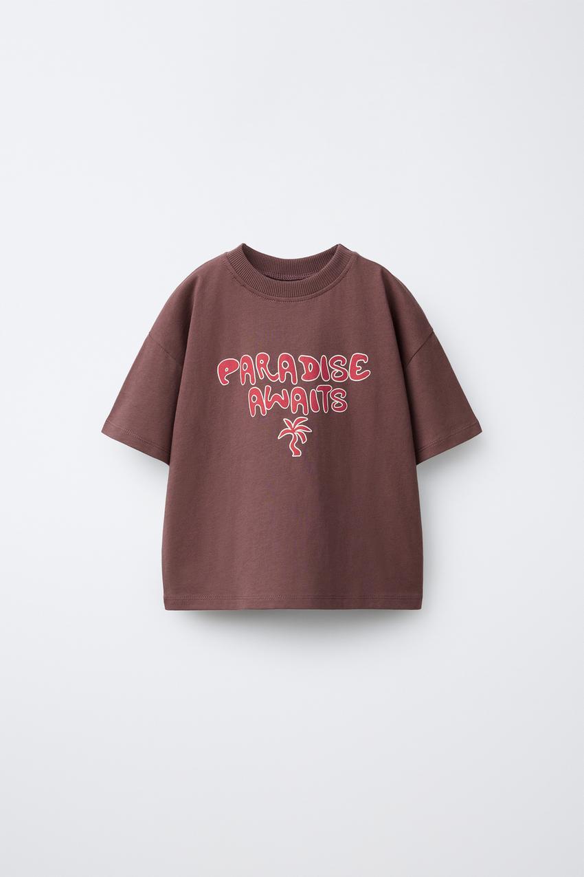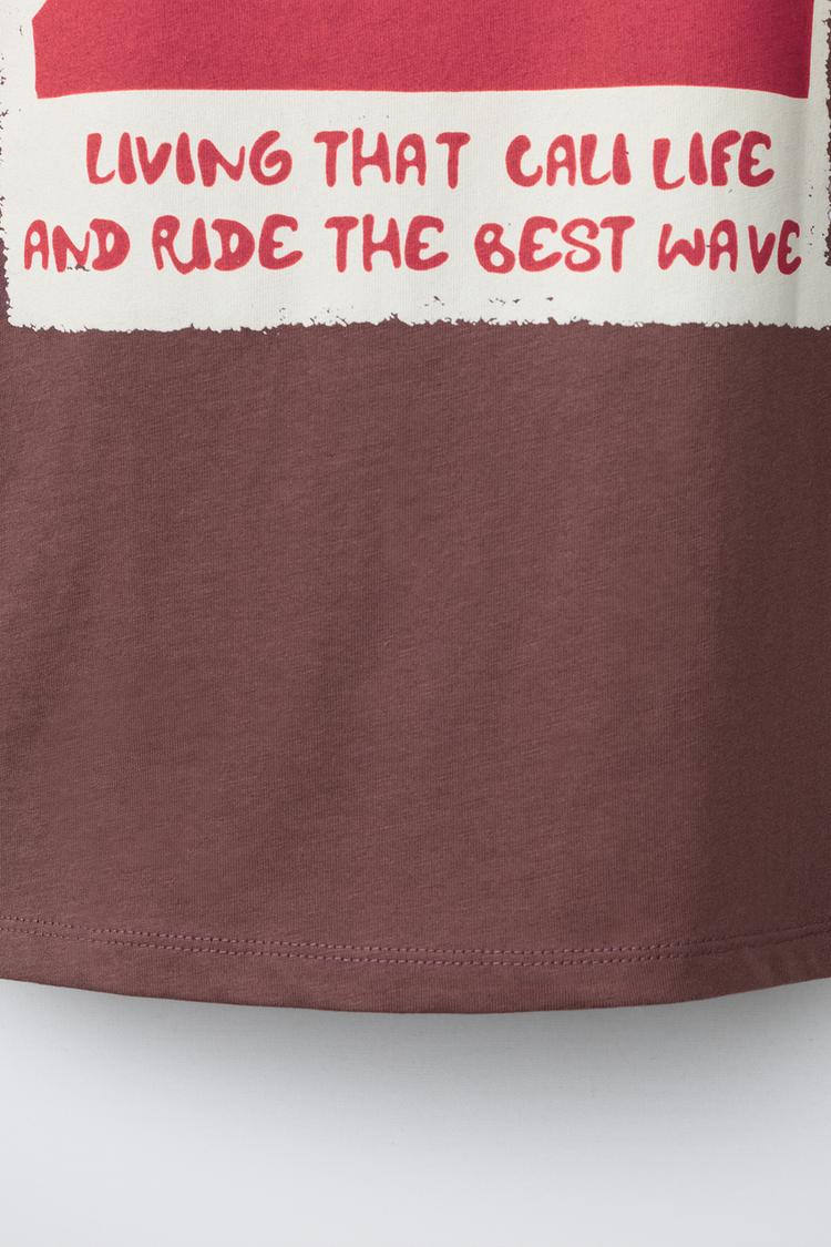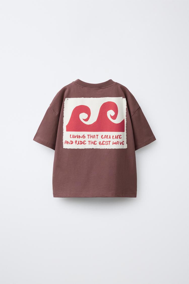 ZARA ФУТБОЛКА С ПРИНТОМ «ВОЛНЫ», СВЕТЛО-КОРИЧНЕВЫЙ