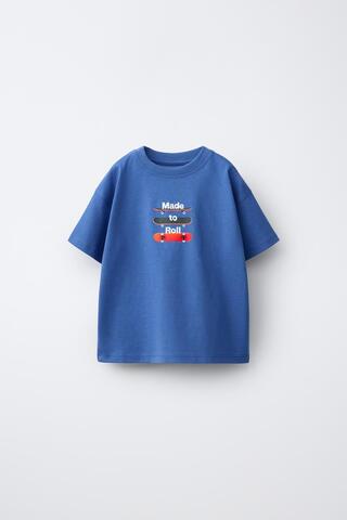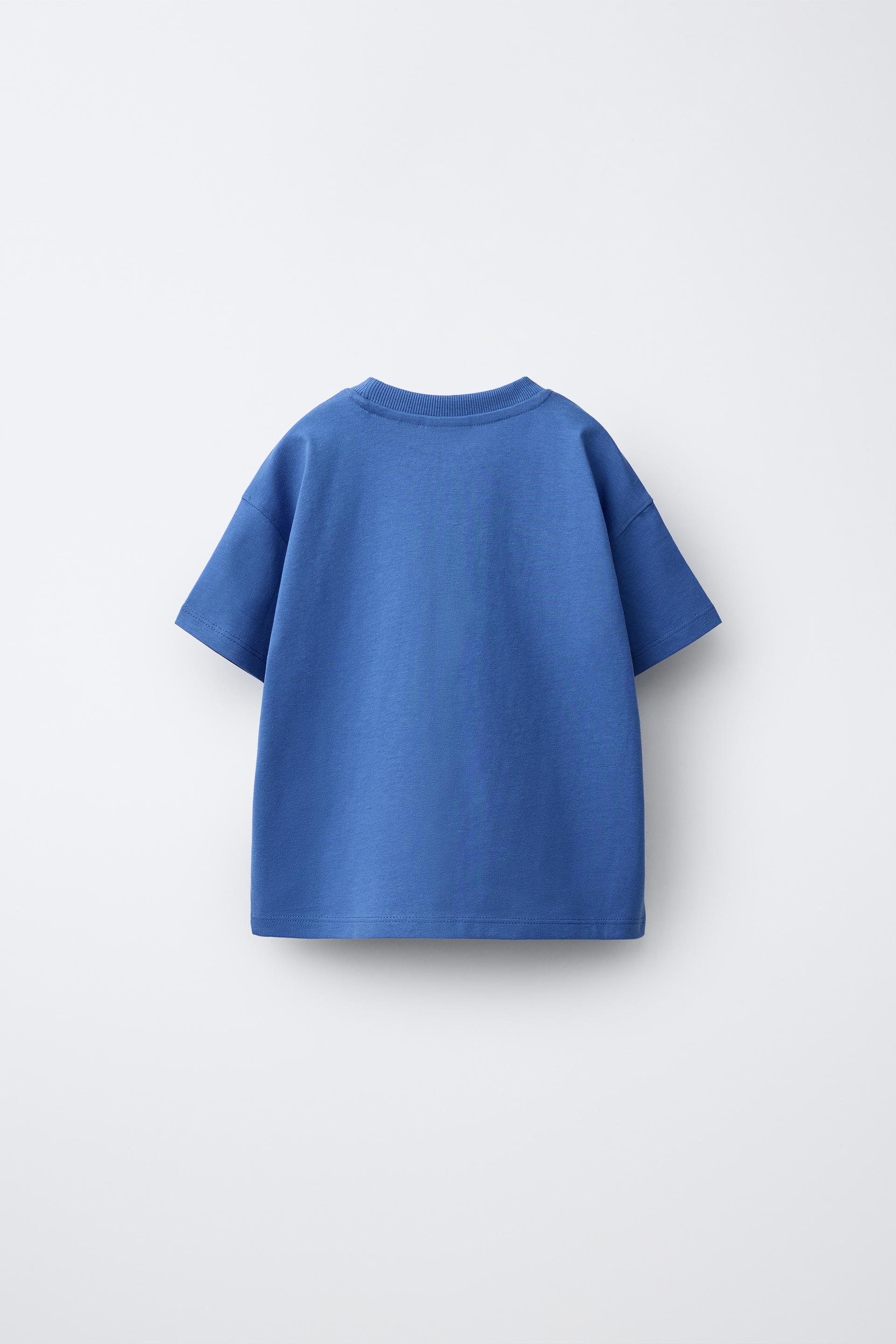 ZARA ФУТБОЛКА С ПРИНТОМ, ЯРКО-СИНИЙ