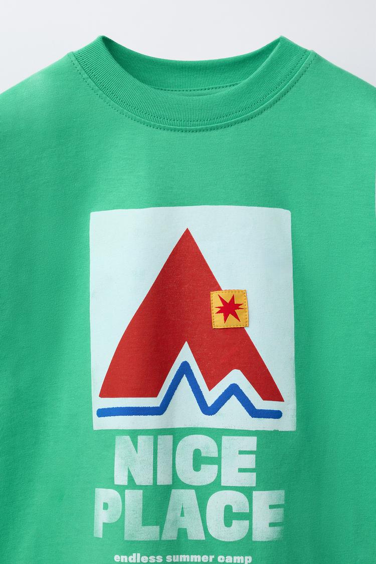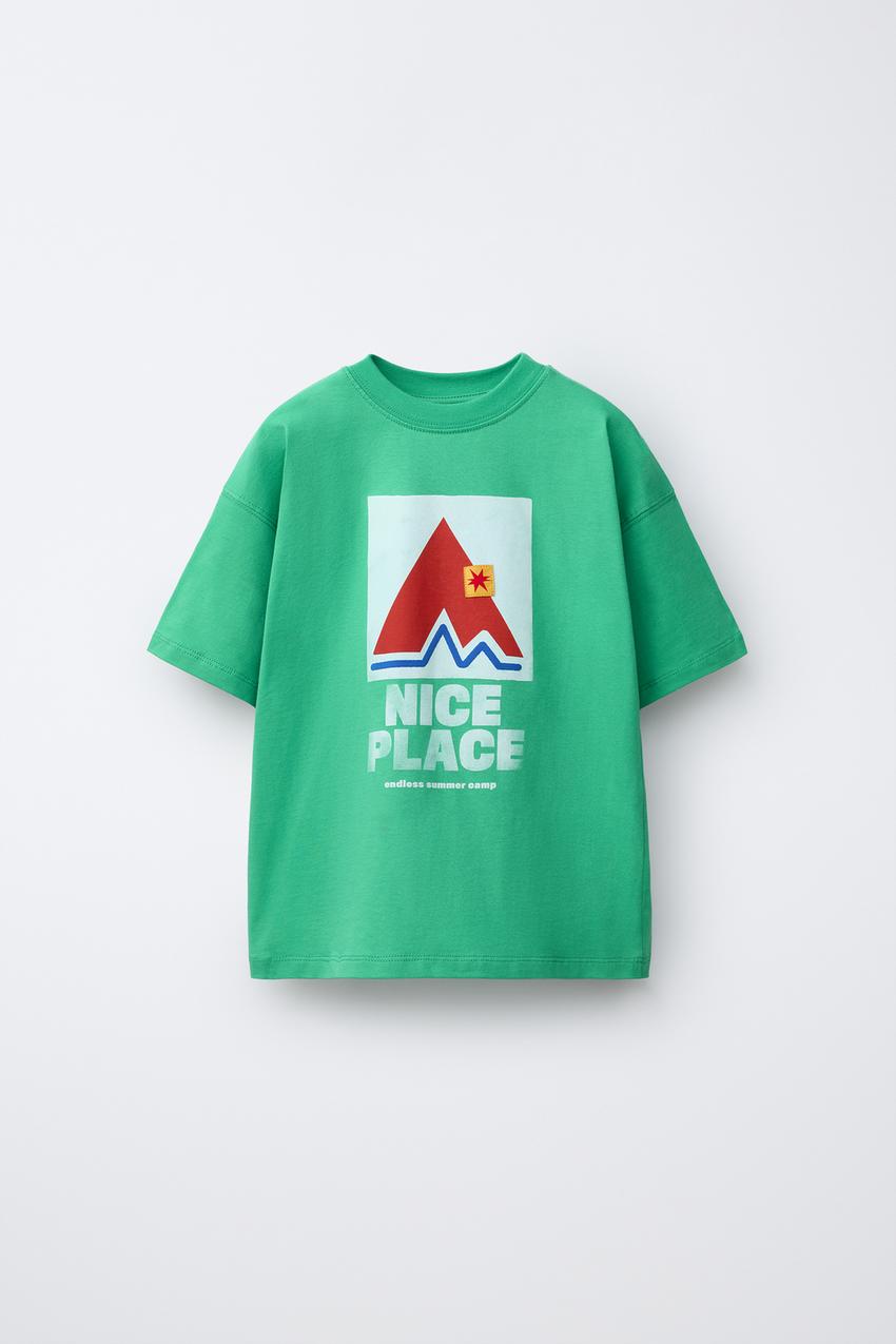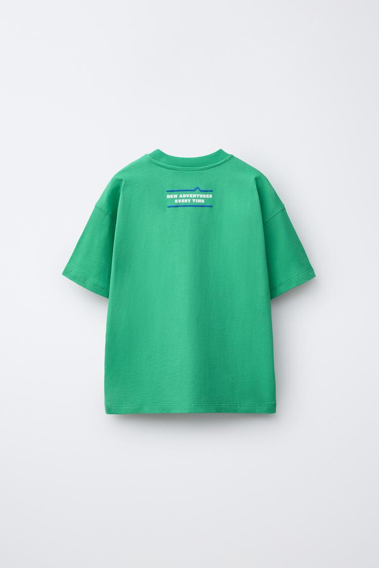 ZARA ФУТБОЛКА С ПРИНТОМ, ЗЕЛЕНЫЙ