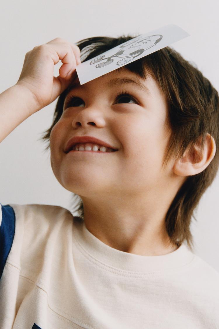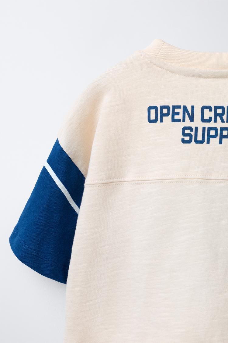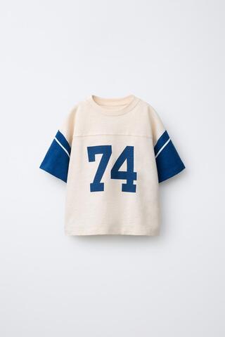 ZARA ФУТБОЛКА С ПРИНТОМ, ЖЕЛТОВАТО-БЕЛЫЙ