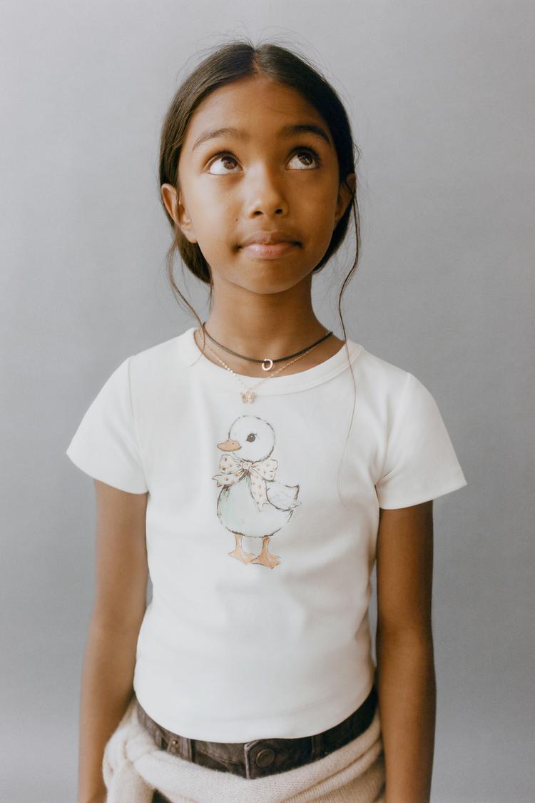 ZARA ФУТБОЛКА С ПРИНТОМ ЖИВОТНЫХ, БЕЛЫЙ