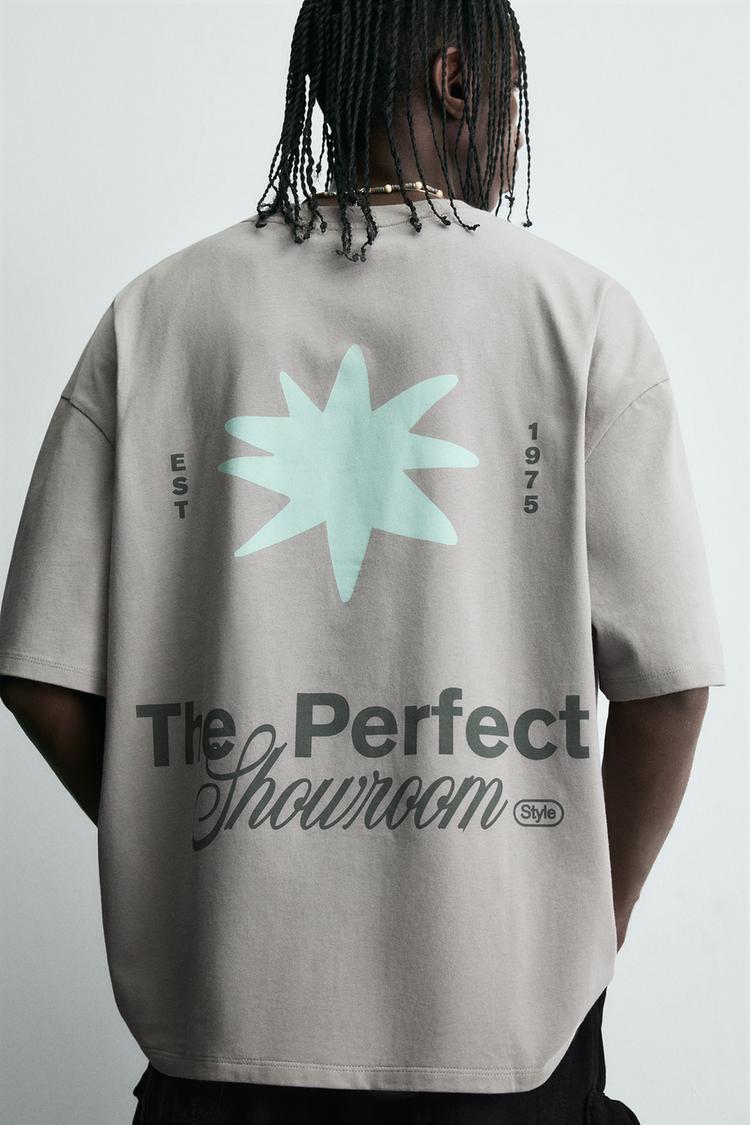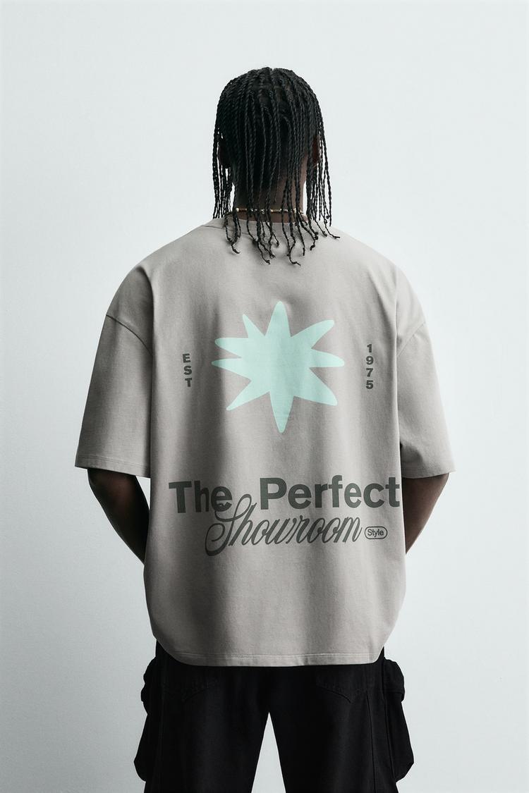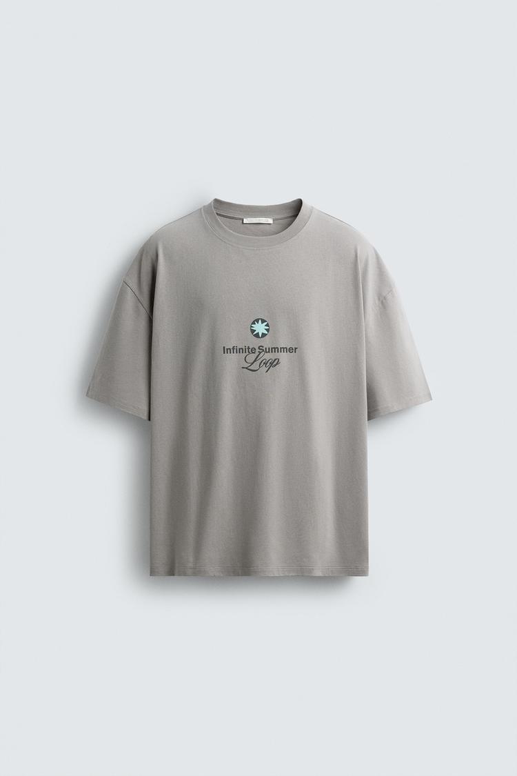 ZARA ФУТБОЛКА С ПРИНТОМ «ЗВЕЗДА», СВЕТЛО-СЕРЫЙ