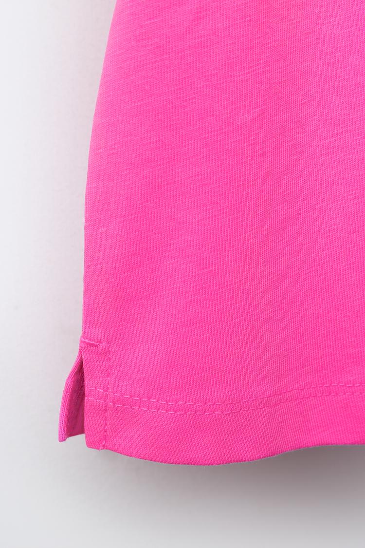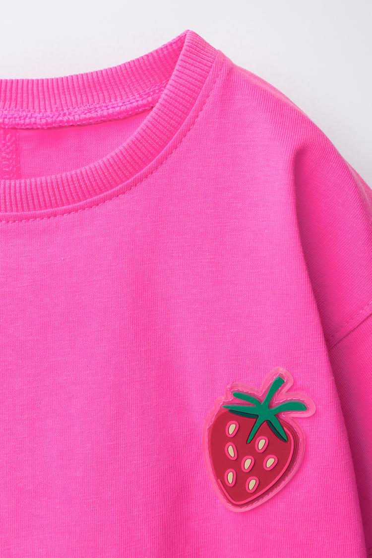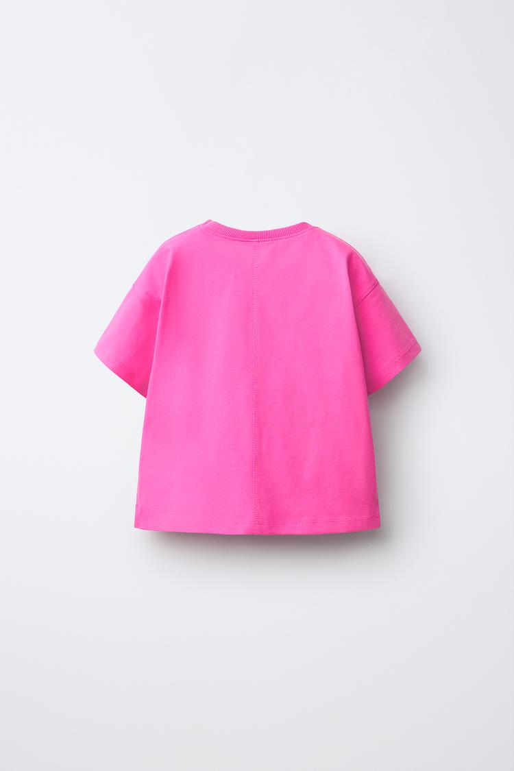 ZARA ФУТБОЛКА С ПРОРЕЗИНЕННОЙ НАШИВКОЙ, НЕОНОВЫЙ РОЗОВЫЙ