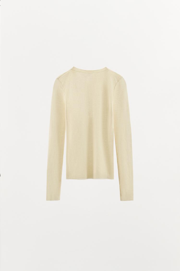 ZARA ФУТБОЛКА С ПУГОВИЦАМИ ИЗ ХЛОПКА, ЭКРЮ