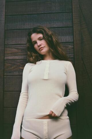 Футболка из хлопковой пряжи. Круглый вырез, длинные рукава. Застегивается на пуговицы спереди.
