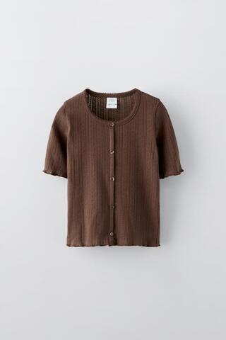 ZARA ФУТБОЛКА С ПУГОВИЦАМИ, КОРИЧНЕВЫЙ