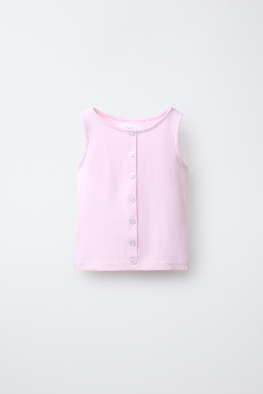 ZARA ФУТБОЛКА С ПУГОВИЦАМИ, РОЗОВЫЙ