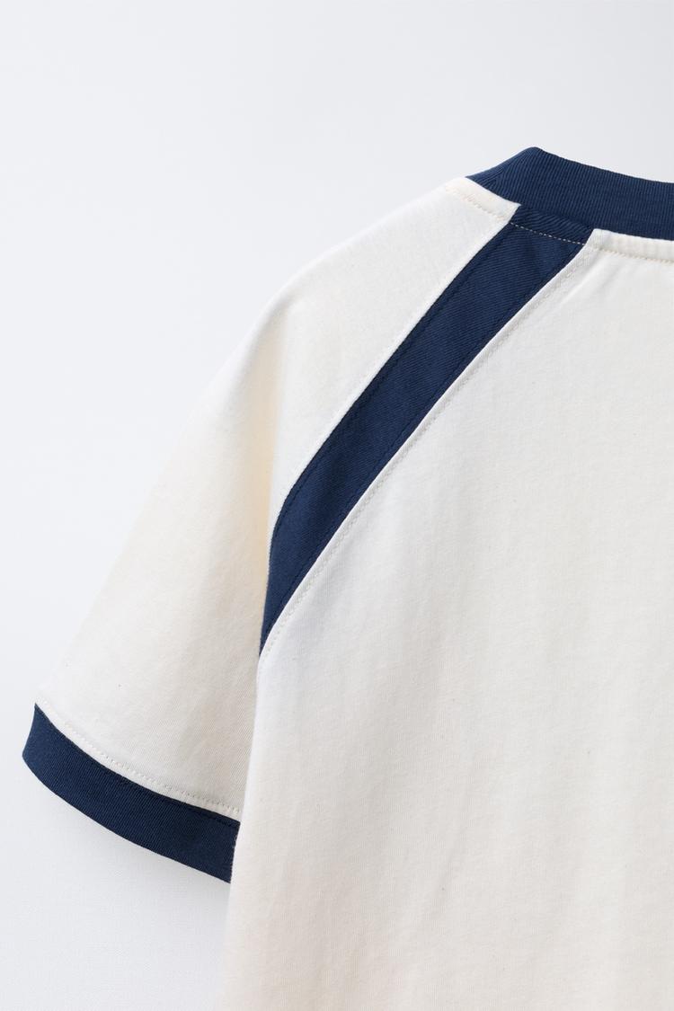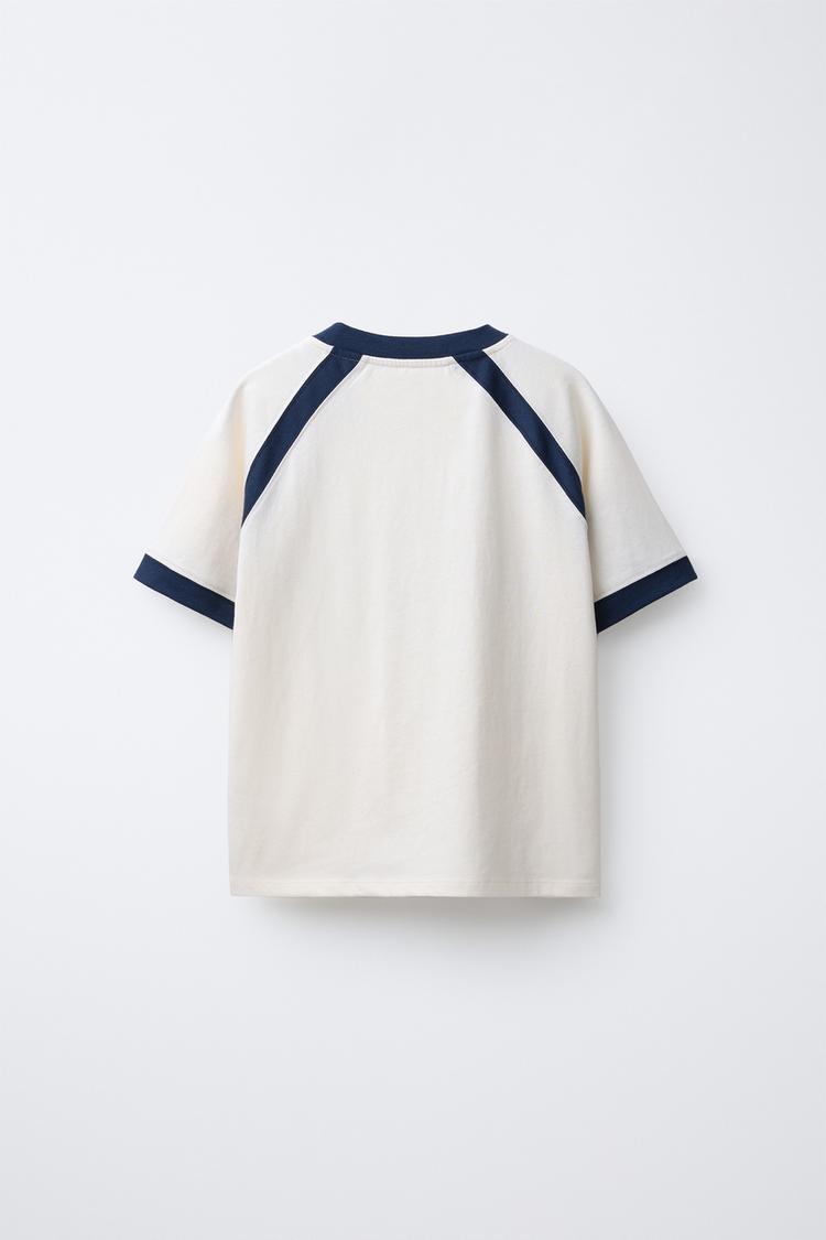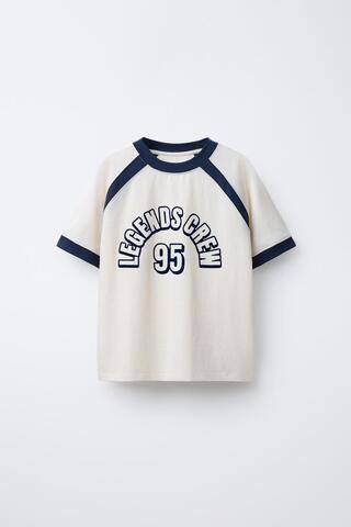 ZARA ФУТБОЛКА С РЕГЛАНОМ И РЕЛЬЕФНЫМ ТЕКСТОМ, ЖЕЛТОВАТО-БЕЛЫЙ