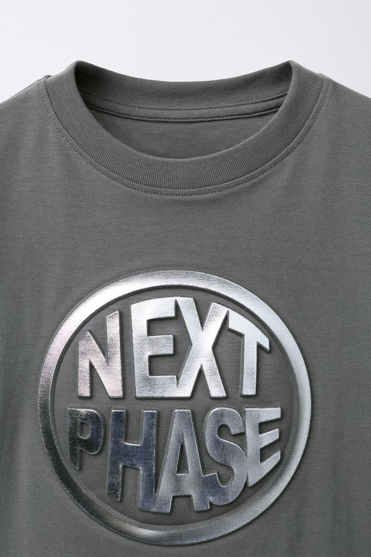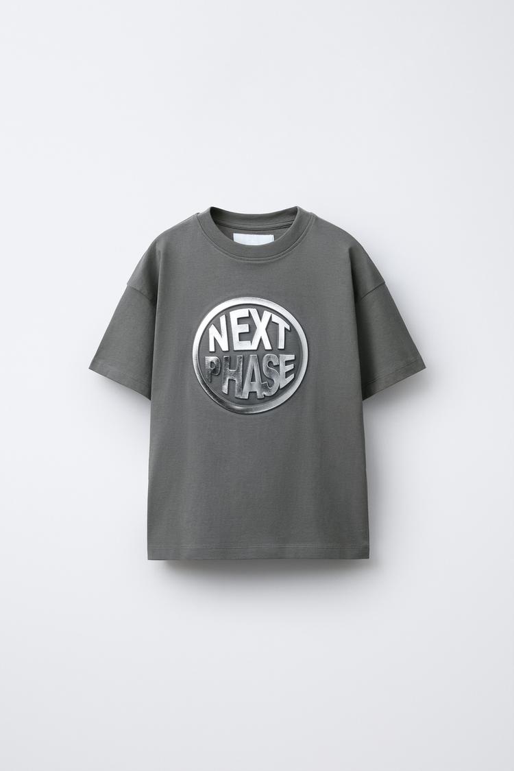 ZARA ФУТБОЛКА С РЕЛЬЕФНОЙ НАДПИСЬЮ, АНТРАЦИТОВО-СЕРЫЙ