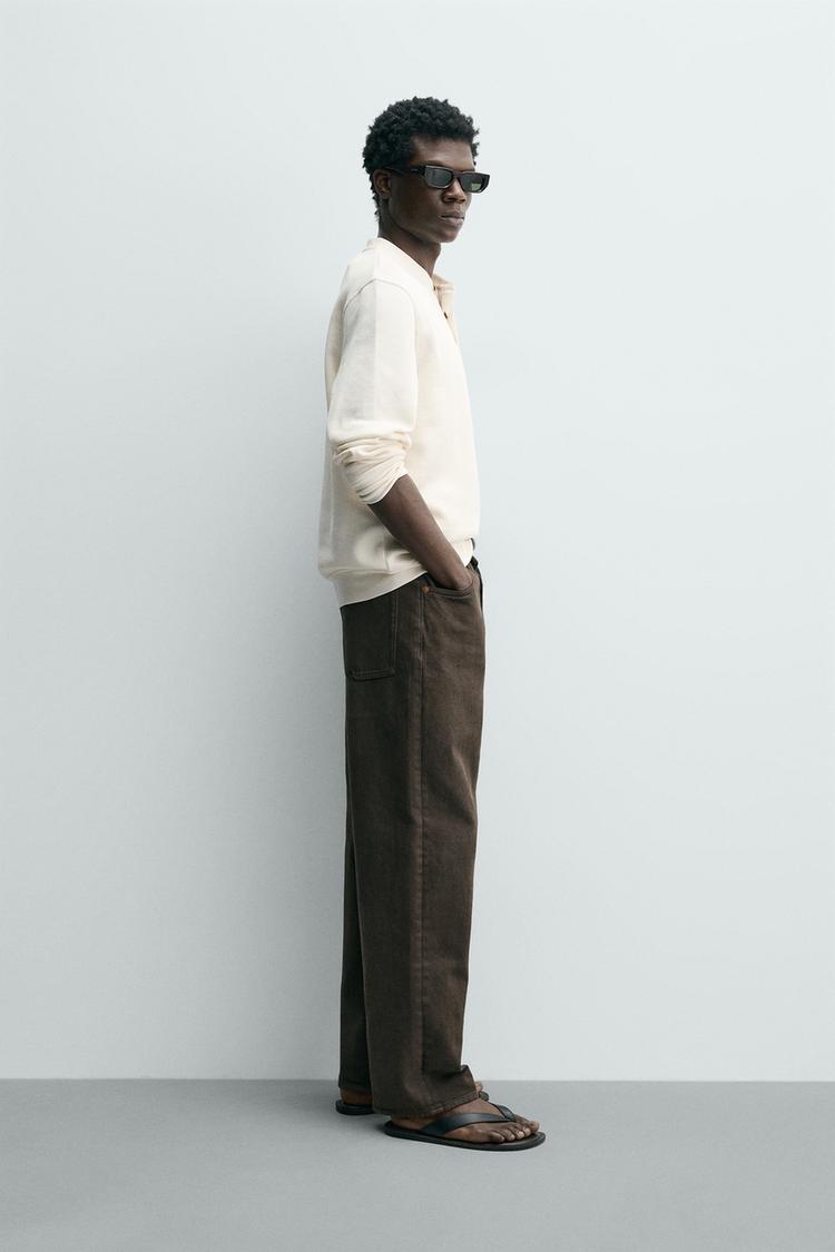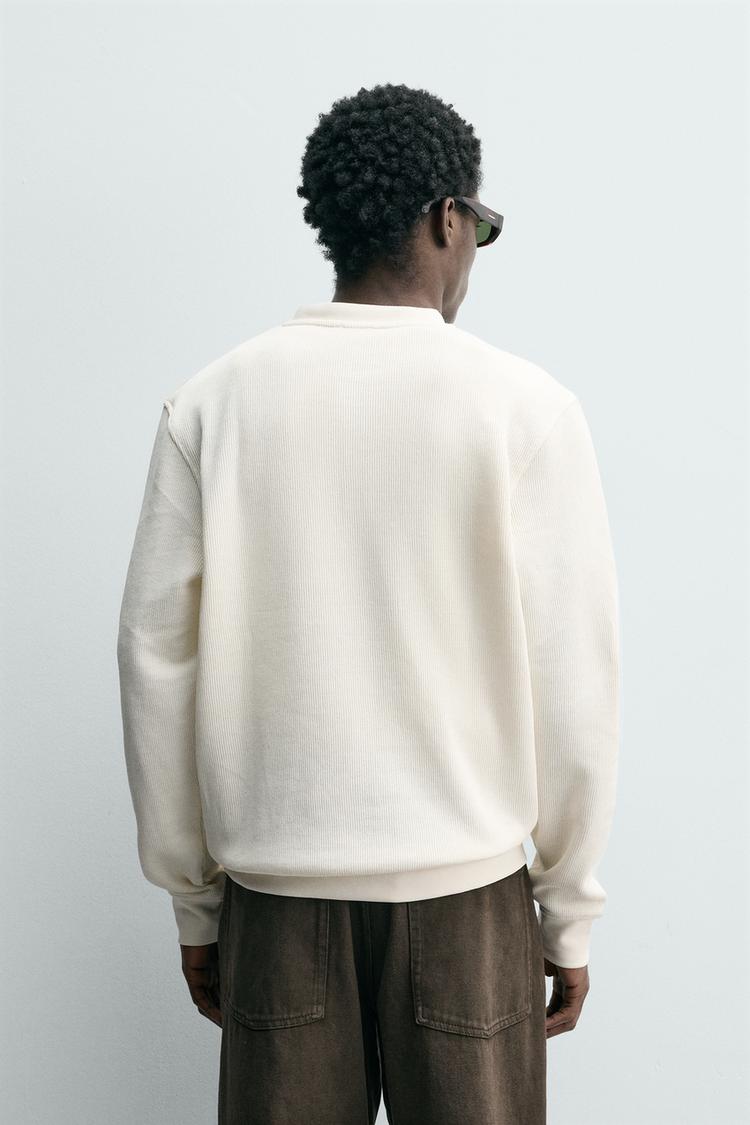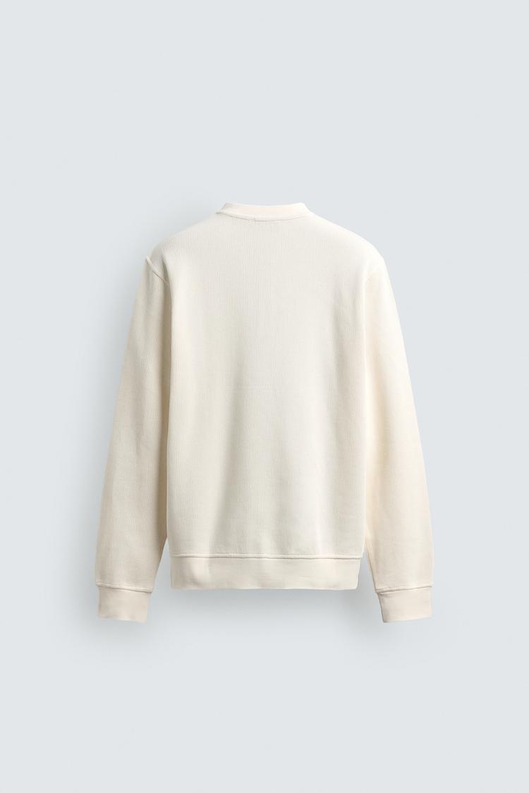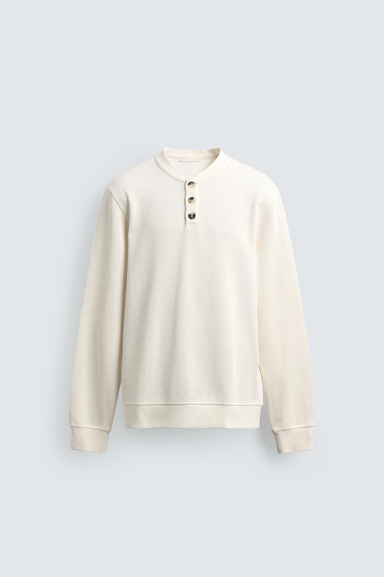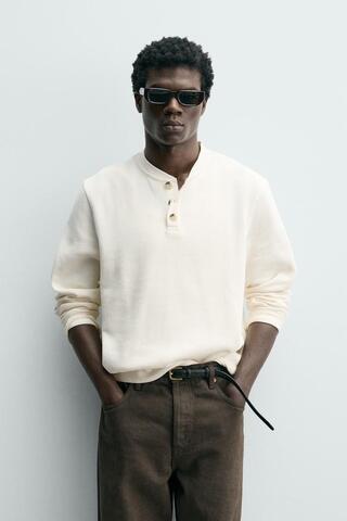 ZARA ФУТБОЛКА С РЕЛЬЕФНОЙ ТКАНЬЮ И ВОРОТНИКОМ НА ПУГОВИЦАХ, СВЕТЛО-БЕЖЕВЫЙ