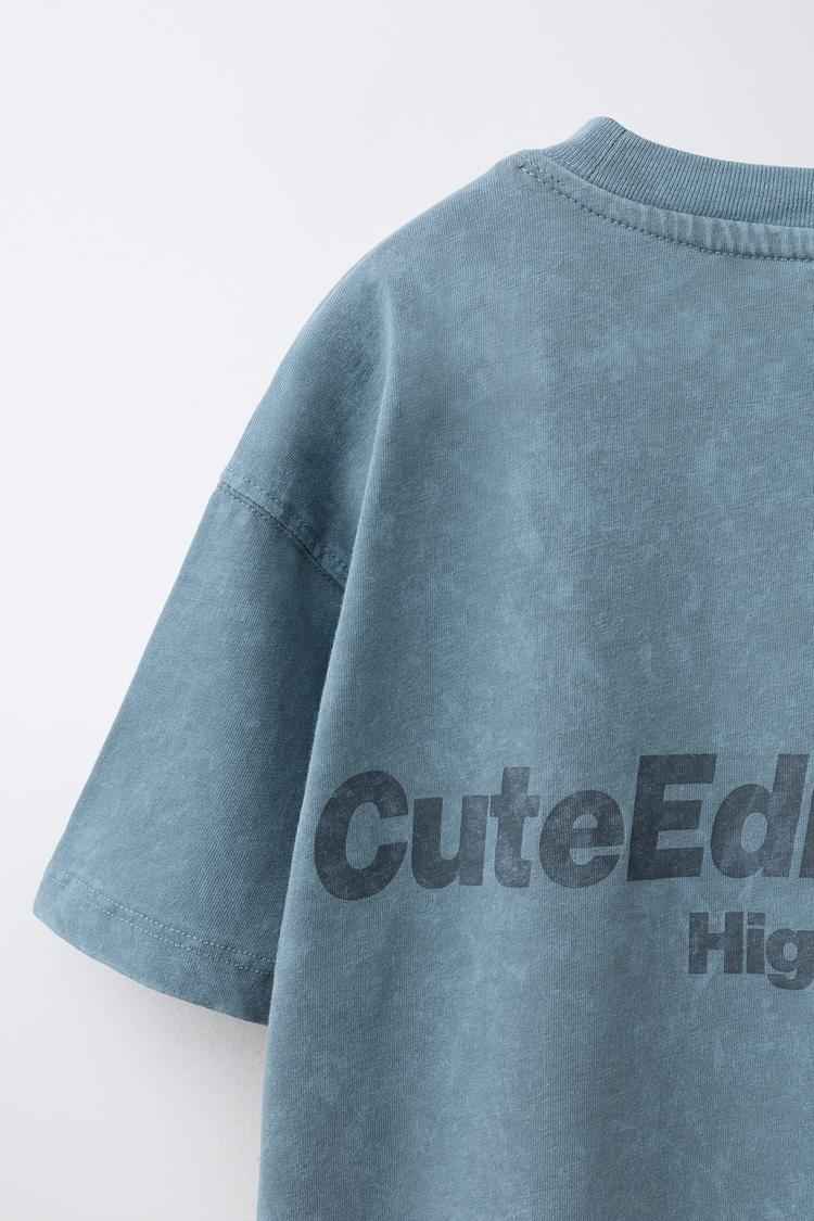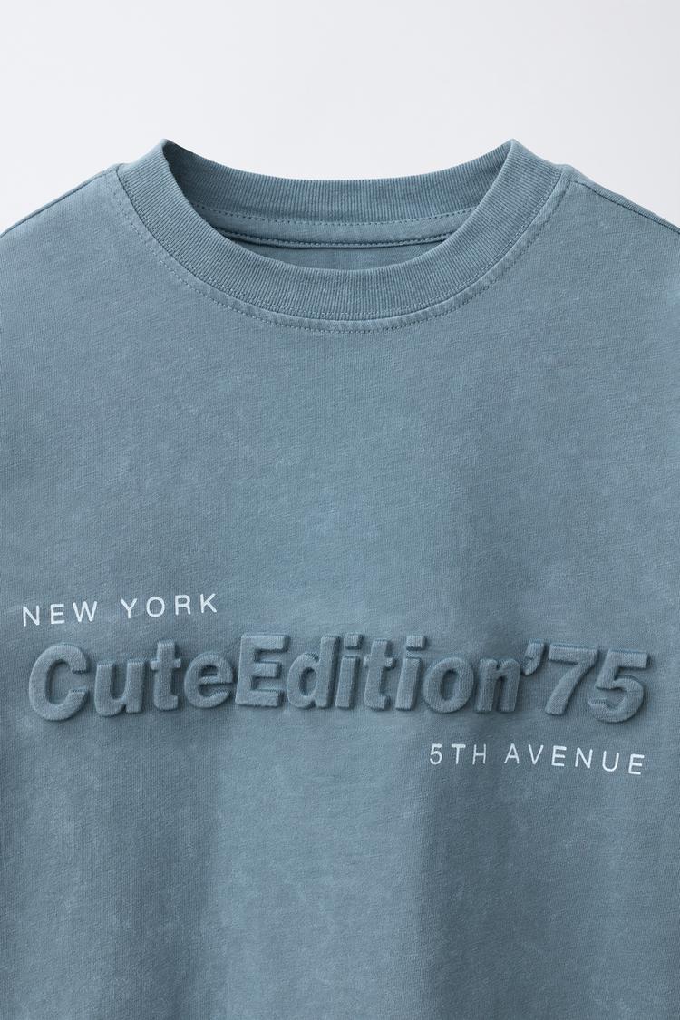 Футболка с круглым вырезом и короткими рукавами. Рельефный текстовый принт спереди и сзади.