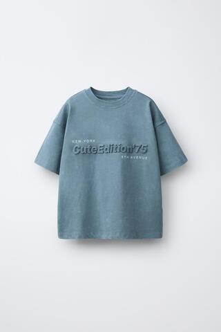 ZARA ФУТБОЛКА С РЕЛЬЕФНЫМ ПРИНТОМ, АНТРАЦИТОВО-СЕРЫЙ