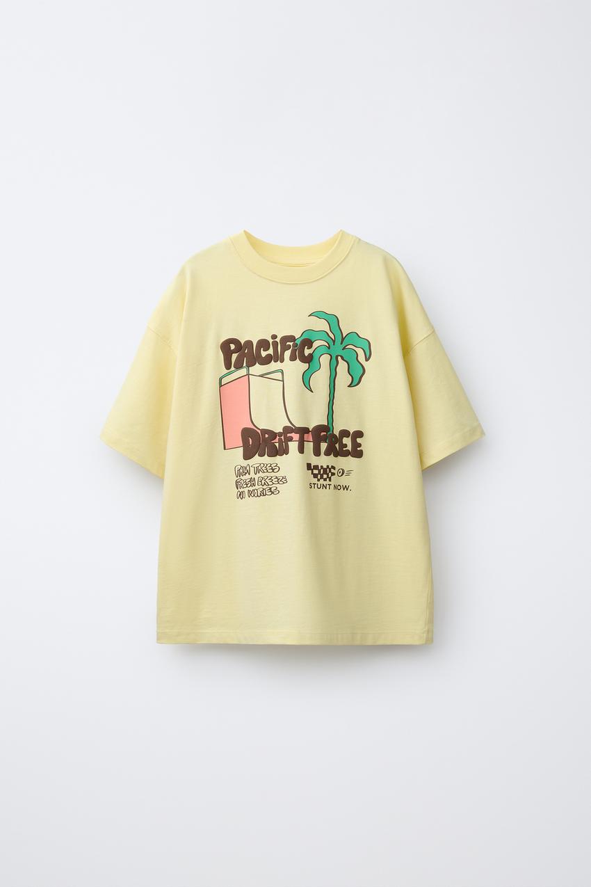 ZARA ФУТБОЛКА С РЕЛЬЕФНЫМ ПРИНТОМ, ЖЕЛТЫЙ