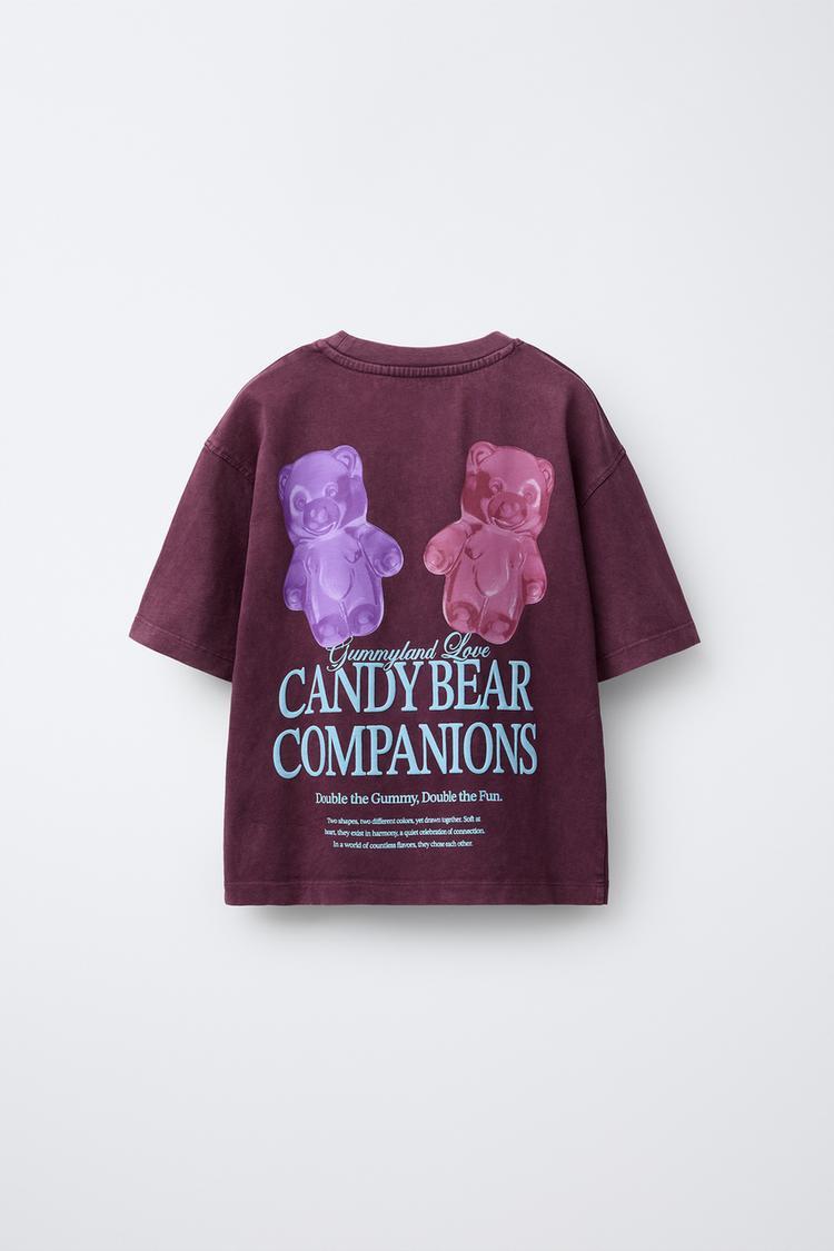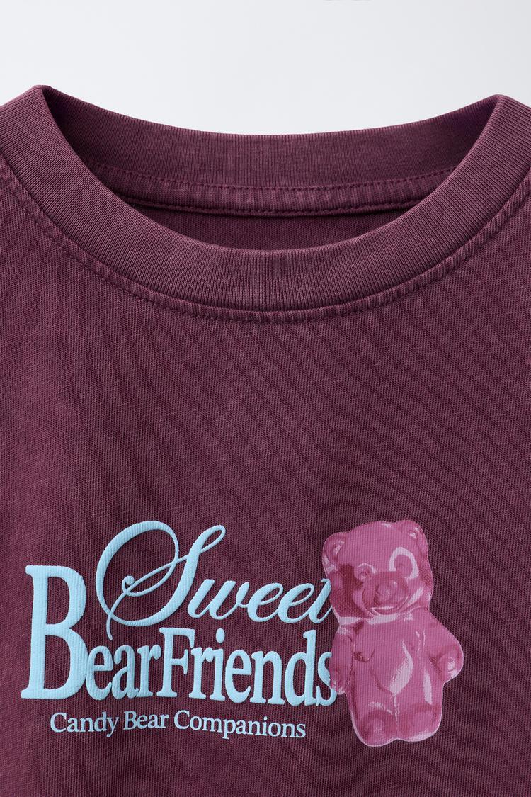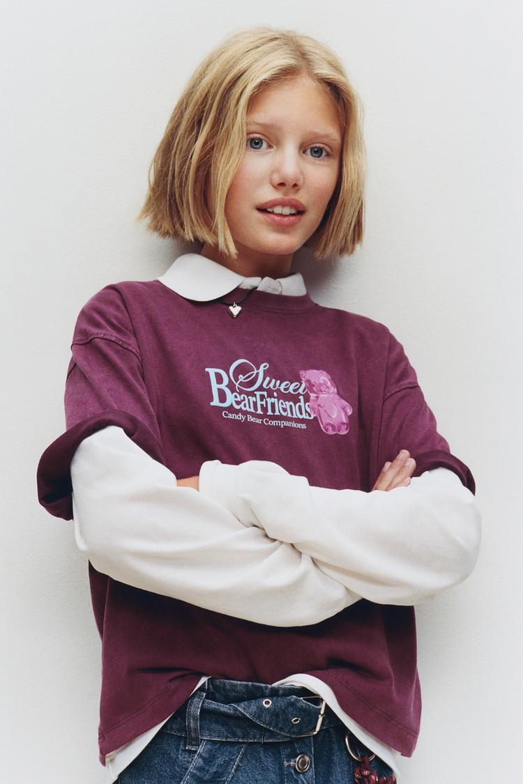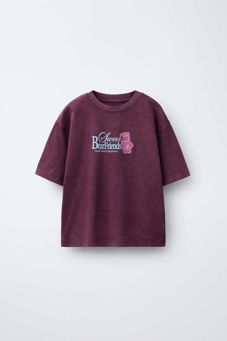ZARA ФУТБОЛКА С РЕЛЬЕФНЫМ ТЕКСТОМ, БАКЛАЖАННЫЙ