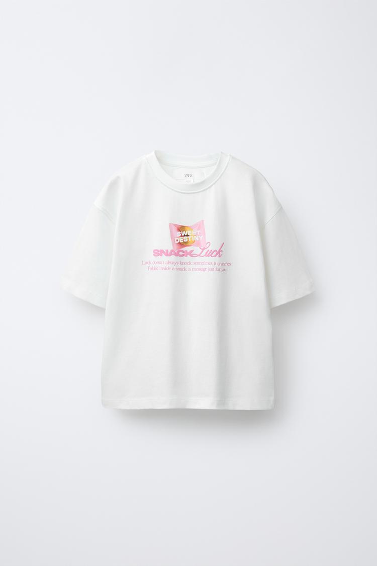 ZARA ФУТБОЛКА С РЕЛЬЕФНЫМ ТЕКСТОМ, БЕЛЫЙ