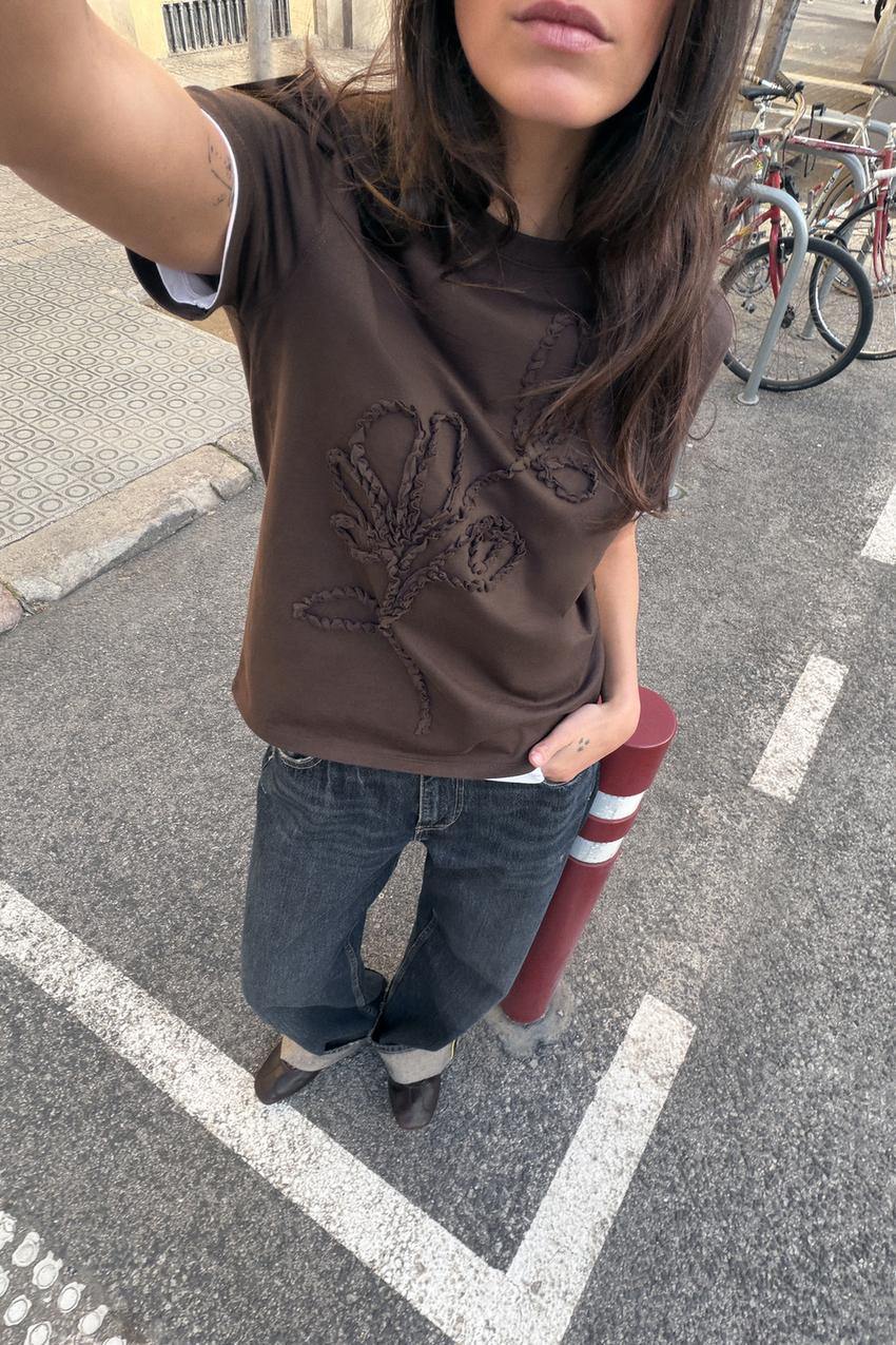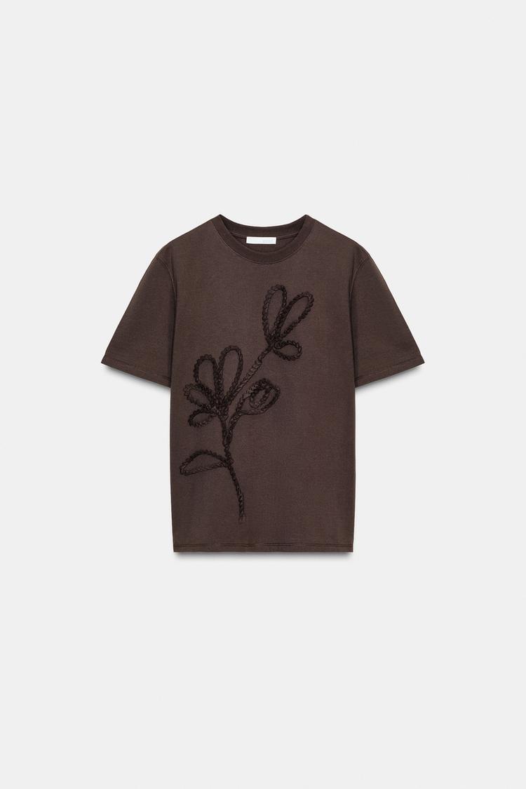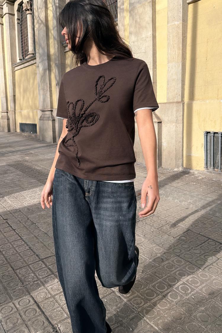 ZARA ФУТБОЛКА С РЕЛЬЕФНЫМИ БАНТАМИ, КОРИЧНЕВЫЙ