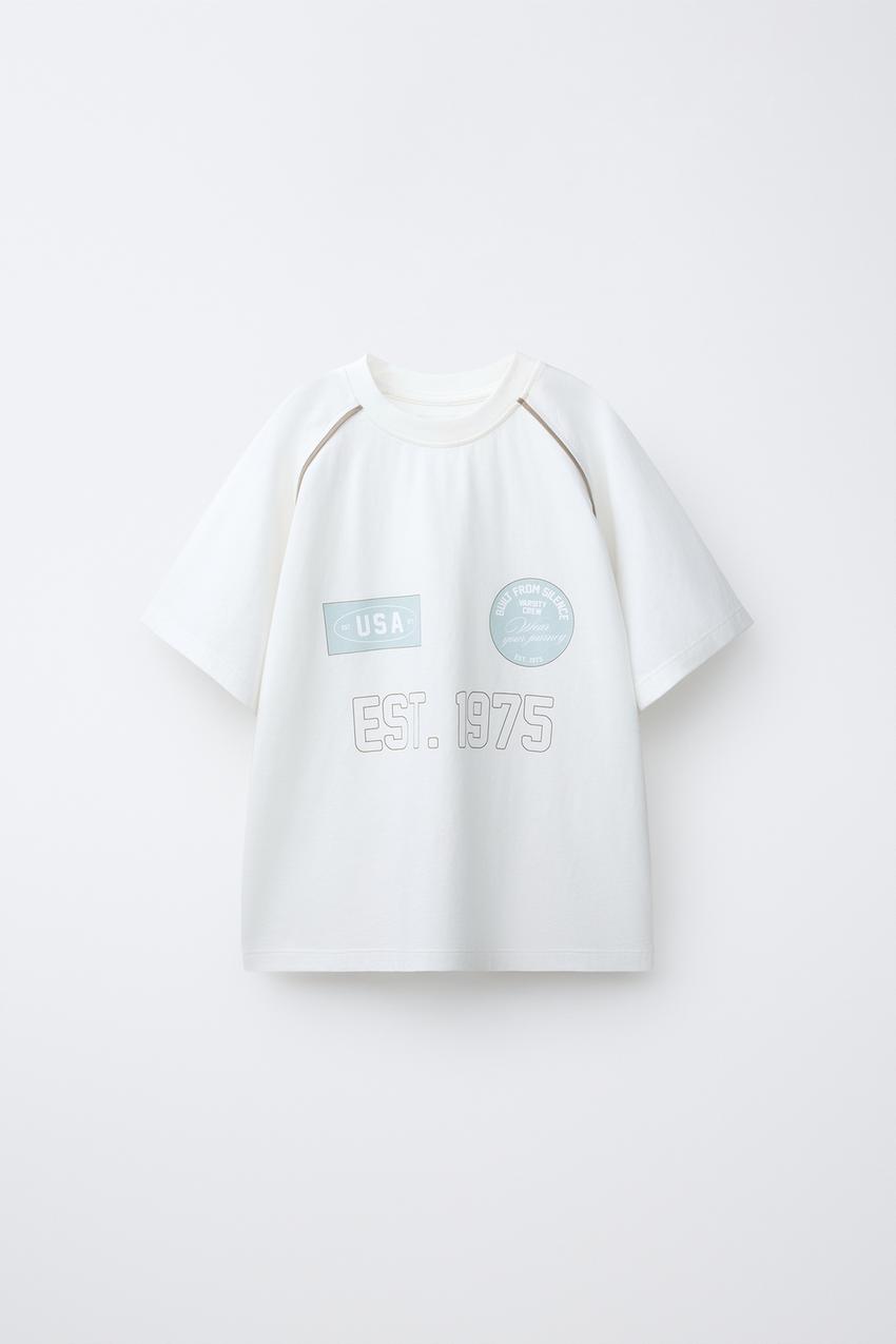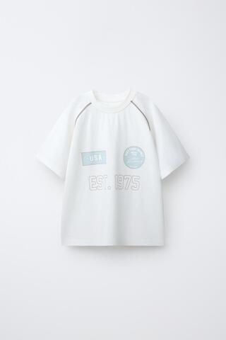 ZARA ФУТБОЛКА С РУКАВАМИ РЕГЛАН И НАДПИСЬЮ, БЕЛЫЙ