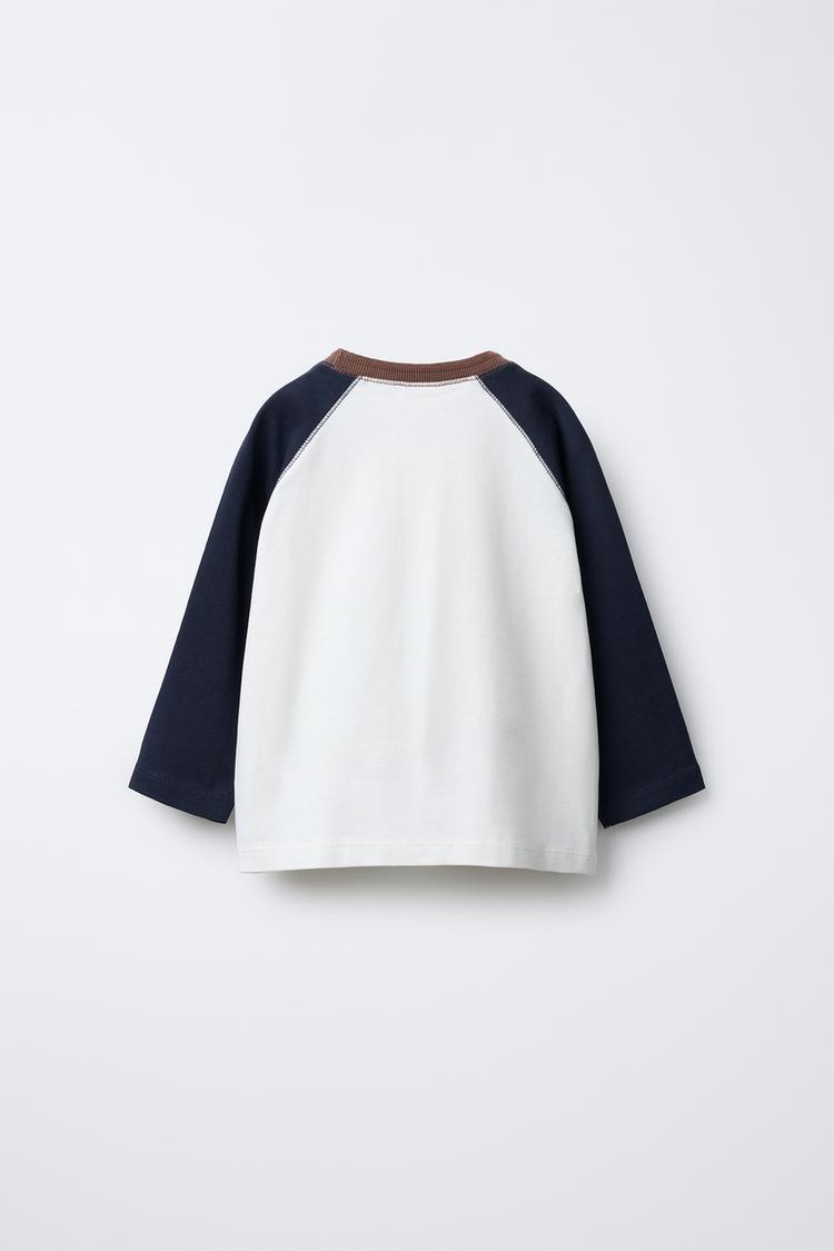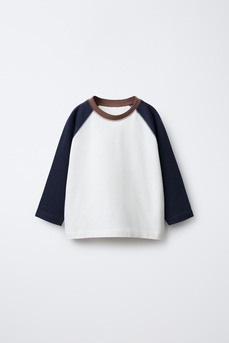 Футболка с круглым вырезом и длинными рукавами реглан. Ткань: 100% хлопок.