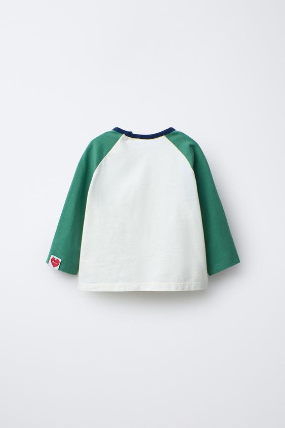 ZARA ФУТБОЛКА С РУКАВАМИ РЕГЛАН SNOOPY PEANUTS™, ЭКРЮ/ЗЕЛЕНЫЙ