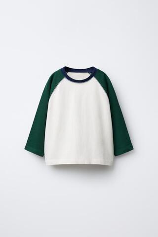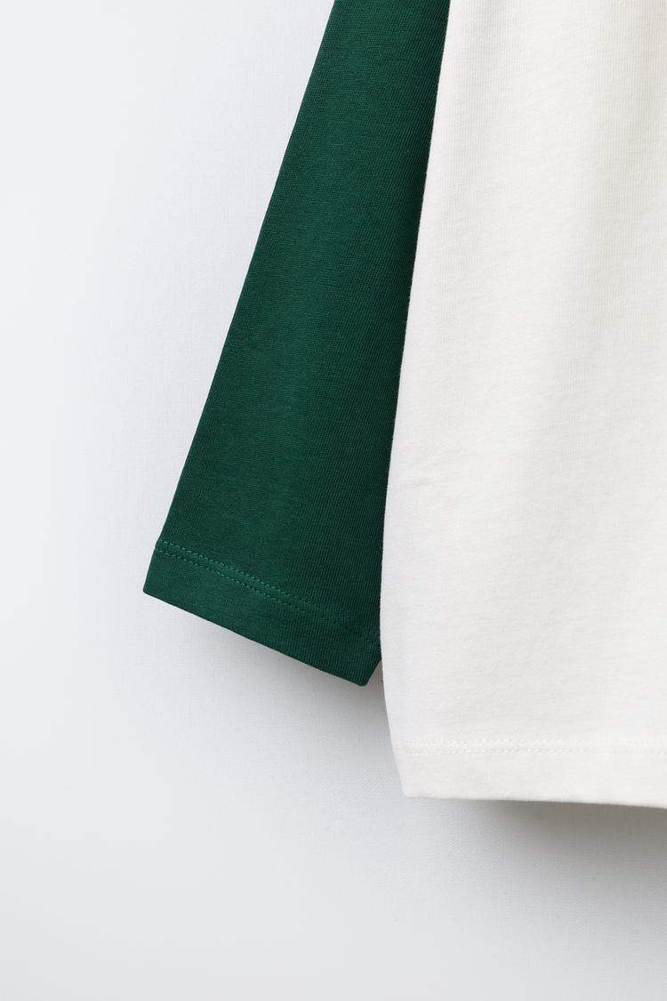 Футболка с круглым вырезом и длинными рукавами реглан. Ткань: 100% хлопок.