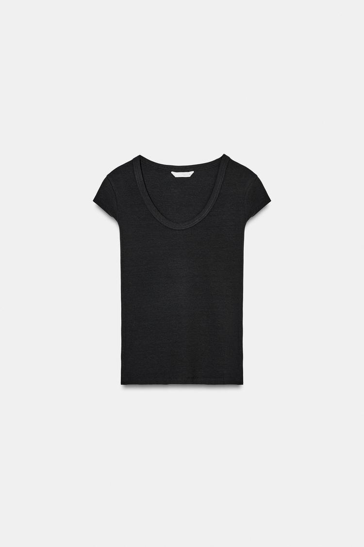 ZARA ФУТБОЛКА С ШИРОКИМ ВЫРЕЗОМ, УГОЛЬНЫЙ