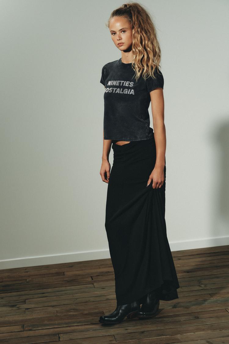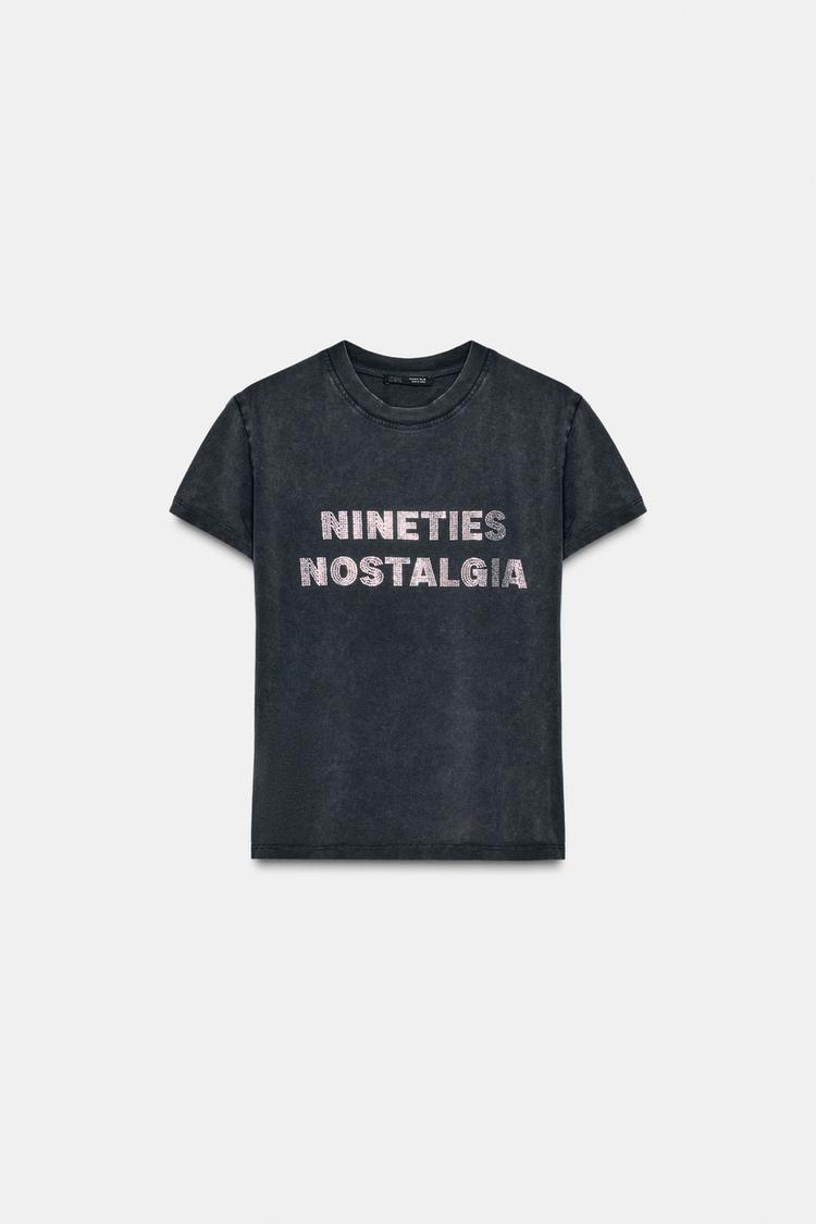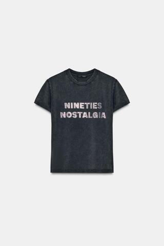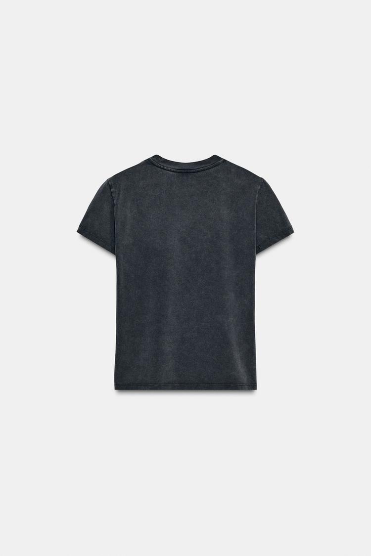 ZARA ФУТБОЛКА С ТЕКСТОМ И ЭФФЕКТОМ ПОТЕРТОСТИ, АНТРАЦИТОВО-СЕРЫЙ