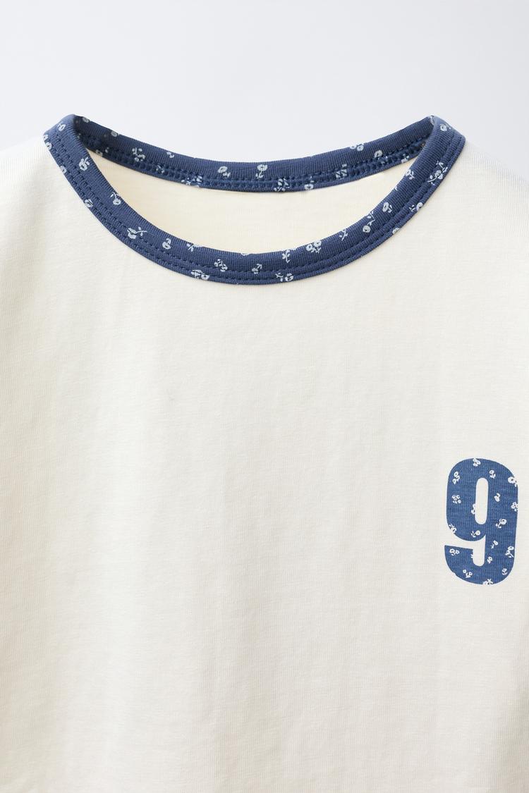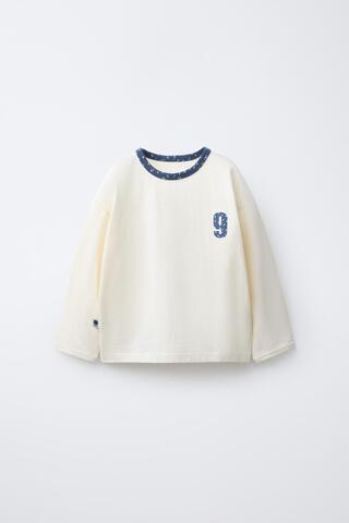 ZARA ФУТБОЛКА С ТЕКСТОВЫМ И ЦВЕТОЧНЫМ ПРИНТОМ, ГОЛУБОЙ