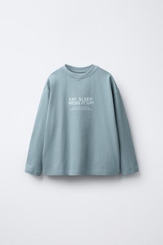 ZARA ФУТБОЛКА С ТЕКСТОВЫМ ПРИНТОМ, ГОЛУБОЙ