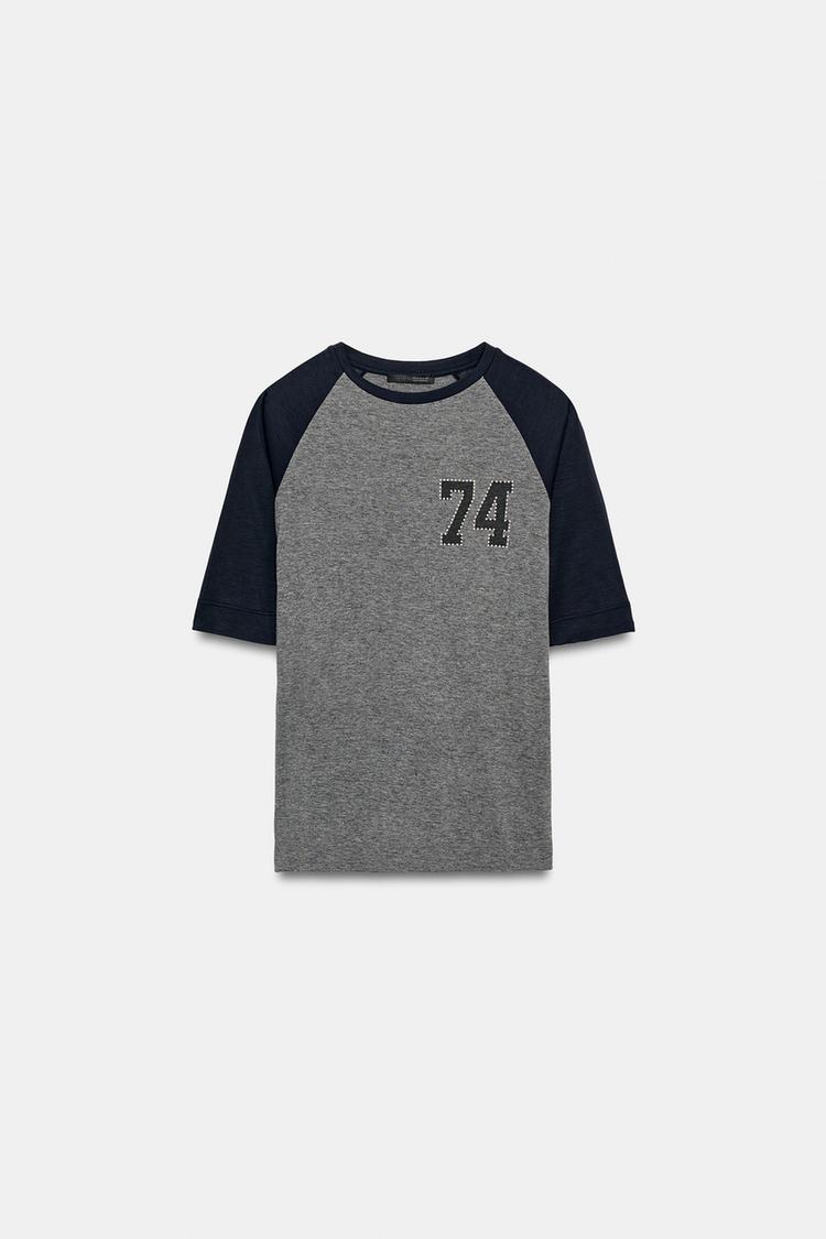 ZARA ФУТБОЛКА С ЦИФРОЙ И ЗАКЛЕПКАМИ, СЕРЫЙ