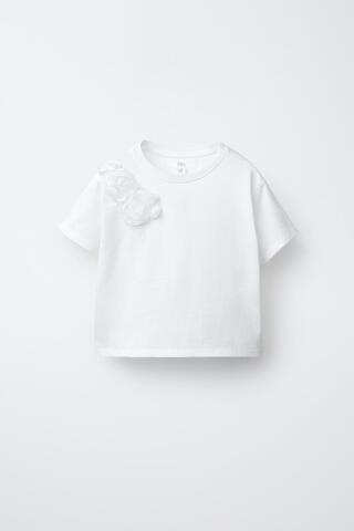 ZARA ФУТБОЛКА С ЦВЕТКОМ ИЗ ОРГАНЗЫ, БЕЛЫЙ