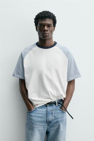 ZARA ФУТБОЛКА С ЦВЕТНЫМИ БЛОКАМИ, ЭКРЮ