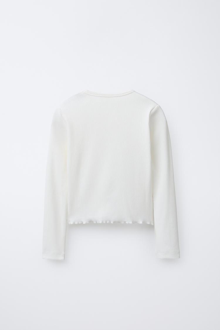 Футболка с круглым вырезом и длинными рукавами. Цветочная аппликация спереди. Ткань: 95% хлопок.