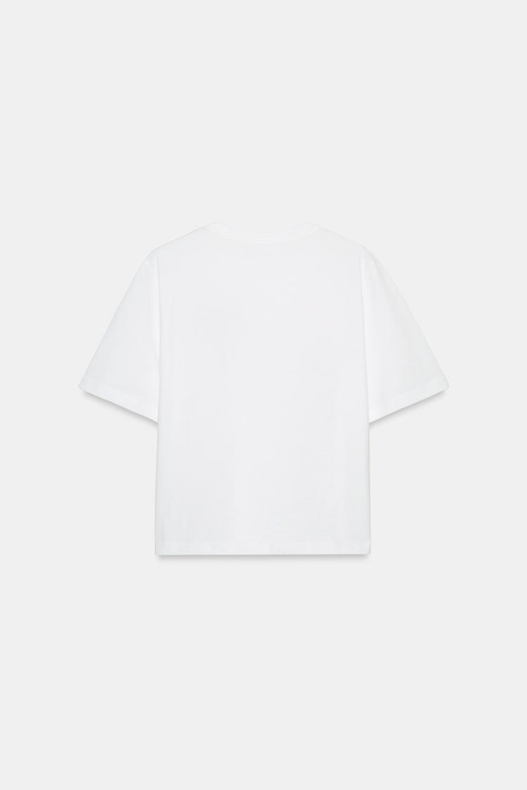 ZARA ФУТБОЛКА С ЦВЕТОЧНОЙ ВЫШИВКОЙ, БЕЛЫЙ