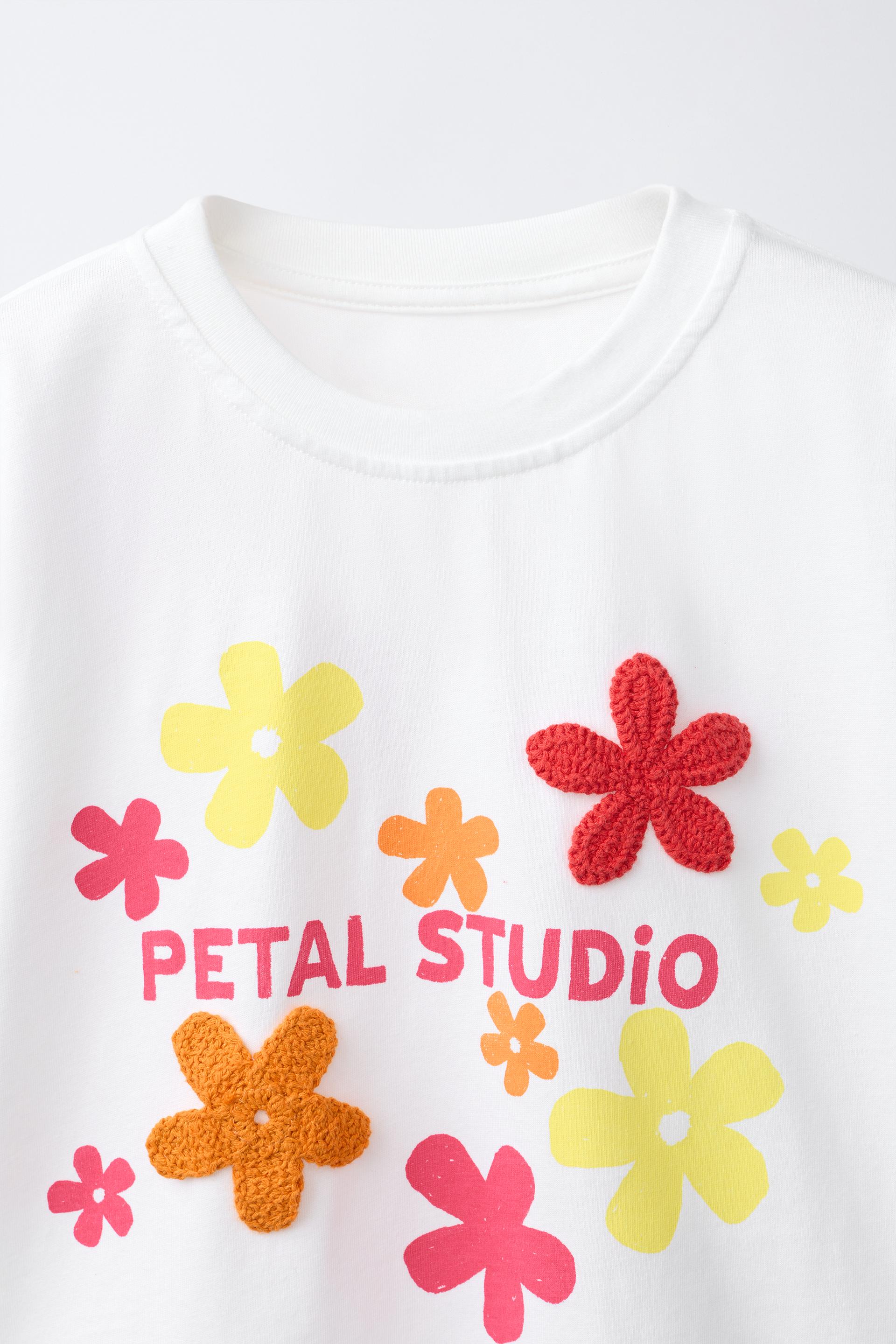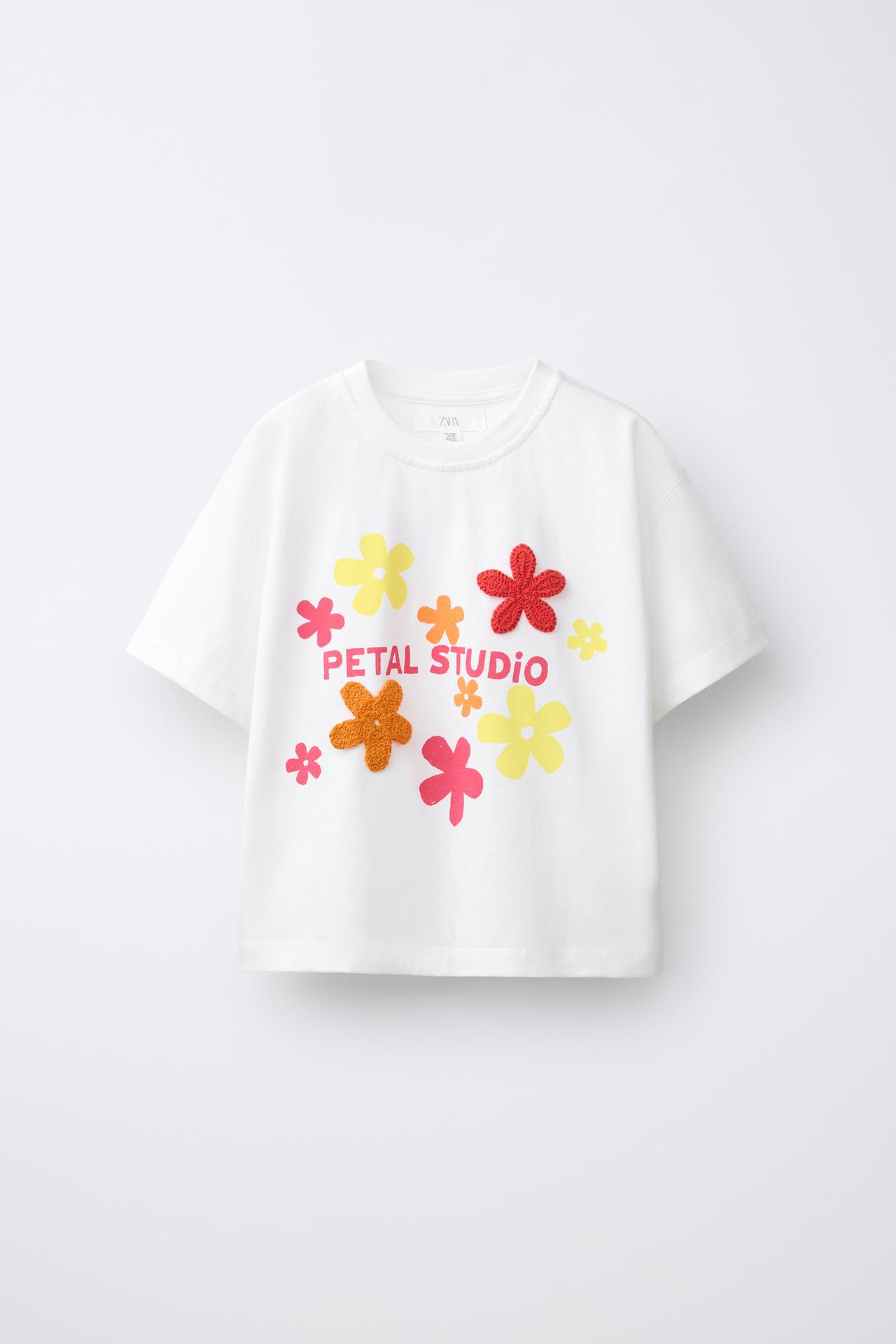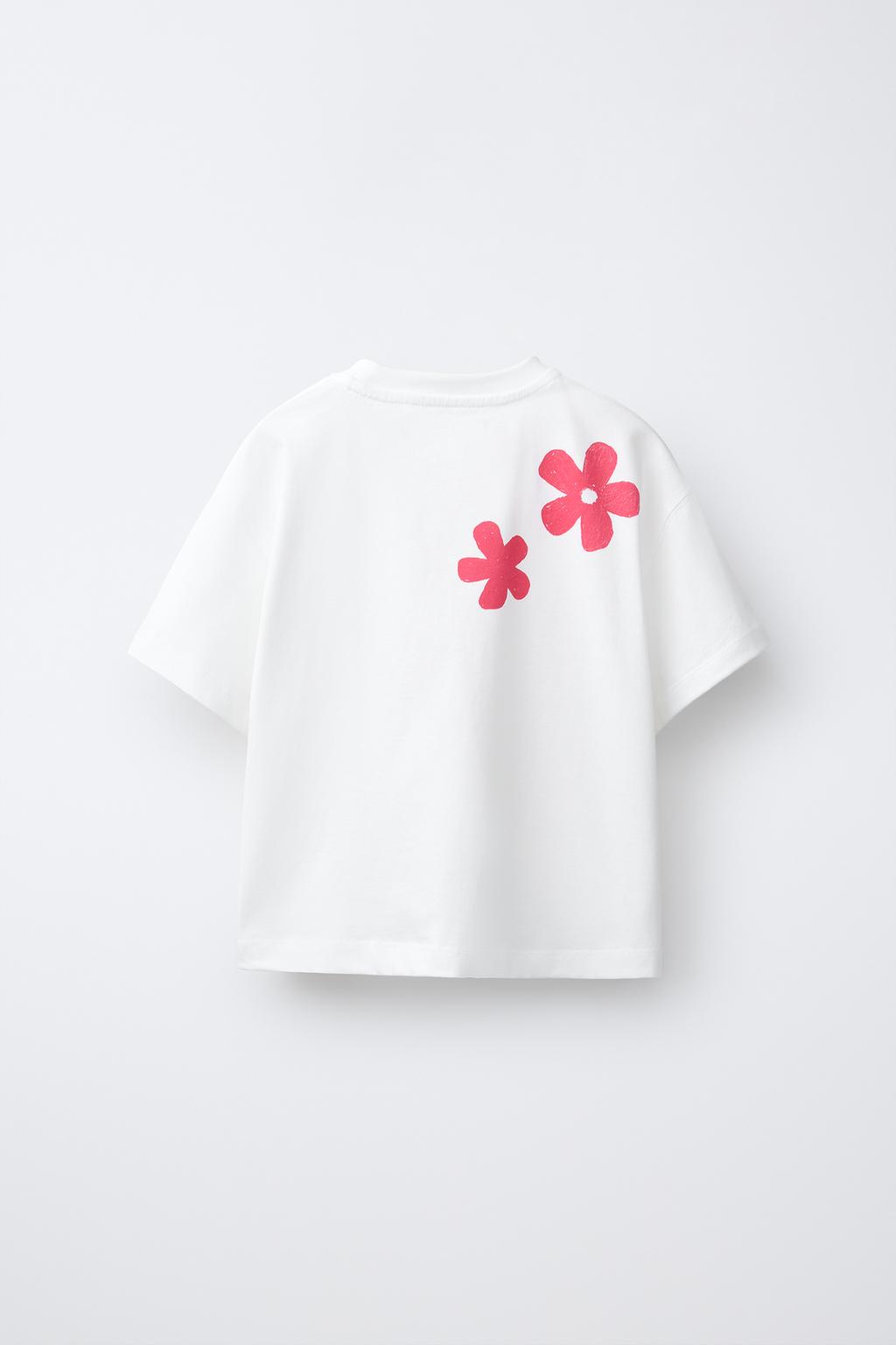 ZARA ФУТБОЛКА С ЦВЕТОЧНЫМ КРОШЕ, БЕЛЫЙ