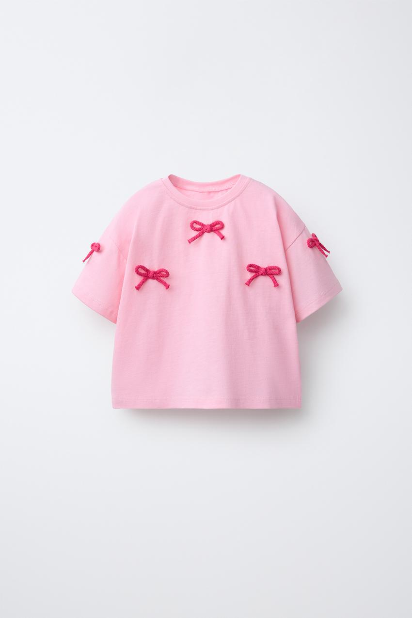ZARA ФУТБОЛКА С ЦВЕТОЧНЫМ КРУЖЕВОМ КРОШЕ, РОЗОВЫЙ