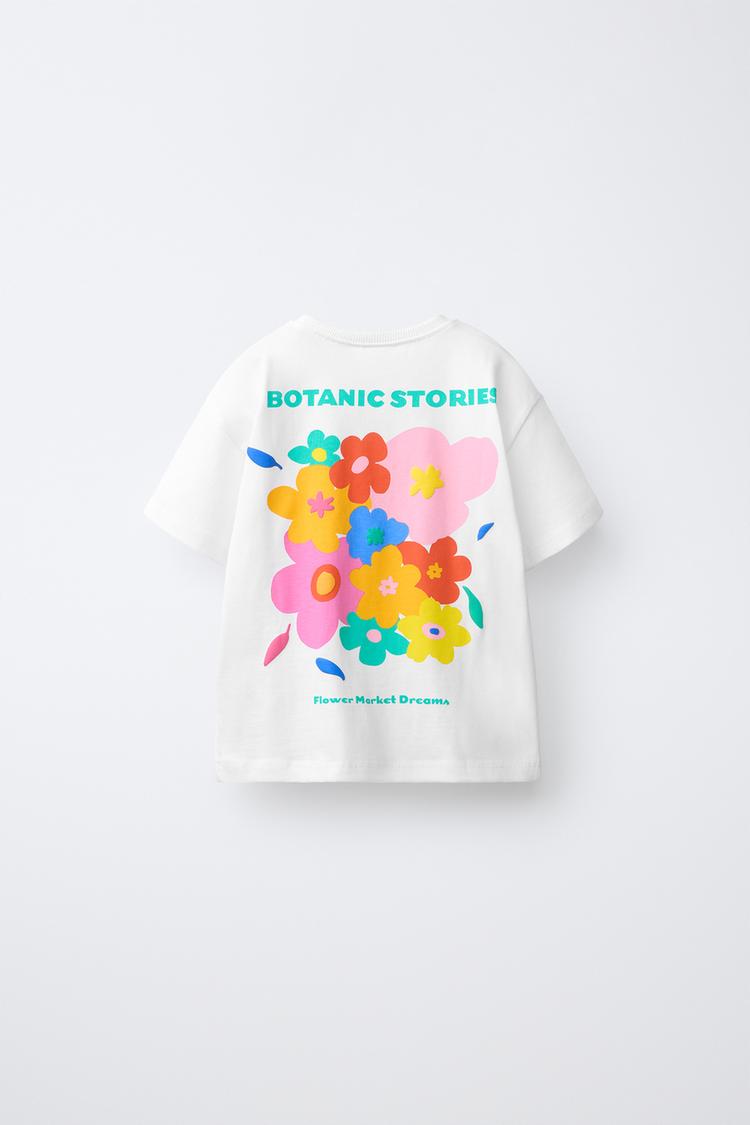 ZARA ФУТБОЛКА С ЦВЕТОЧНЫМ ПРИНТОМ, БЕЛЫЙ